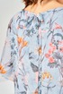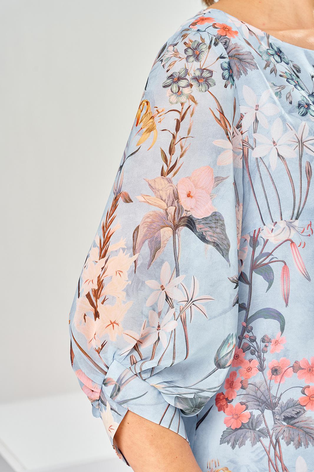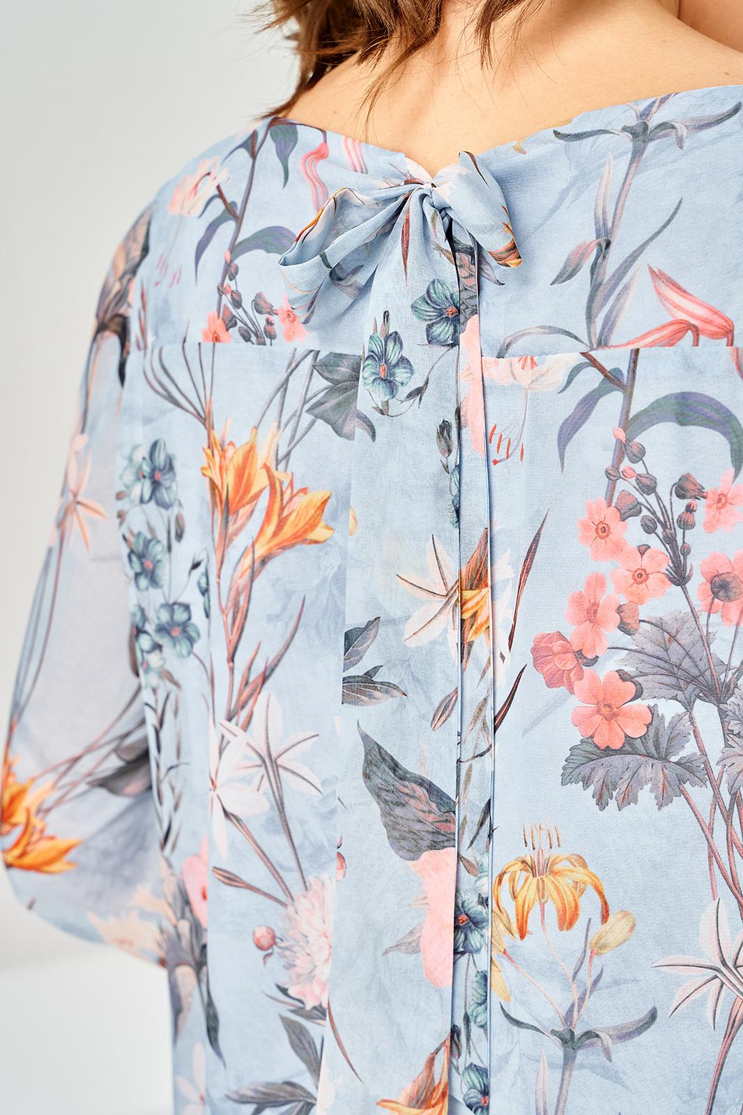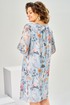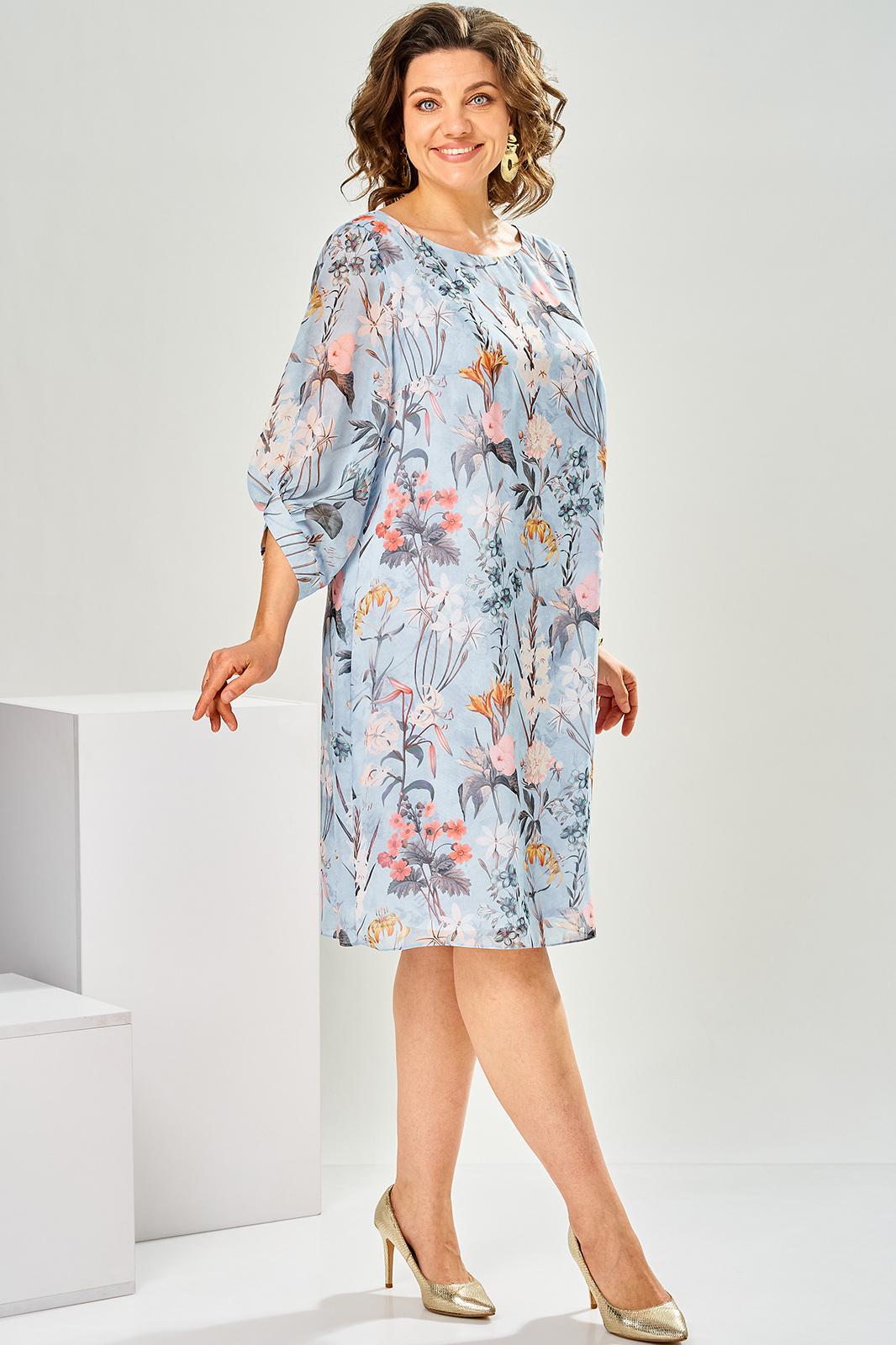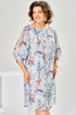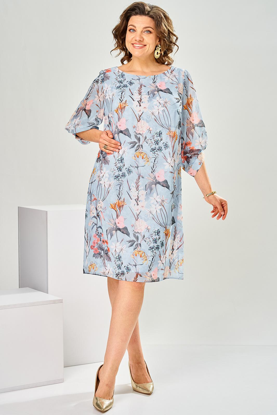 Платье женское относится к нарядной торжественной одежде. Платье женское прямого силуэта, длиной за колено. Перед с 2-мя нагрудными вытачками. Спинка с отрезной кокеткой с фигурным обтачным разрезом, фиксирующимся по горловине на 2-е обточные завязки. Горловина круглая, обтачная, без воротника. Рукав втачной, одношовный, длиной 3/4 с фигурным низом с 14-ю односторонними складками (по 7 с каждой стороны от угла манжеты), с притачной манжетой из отделочной ткани. Платье на подкладке. Платье без плечевых накладок.