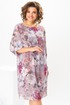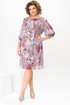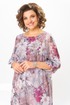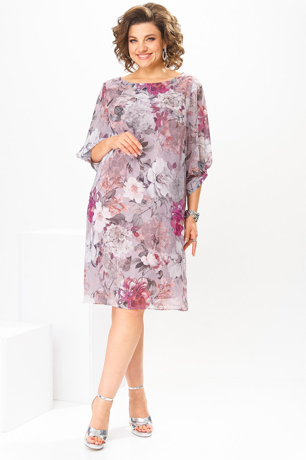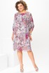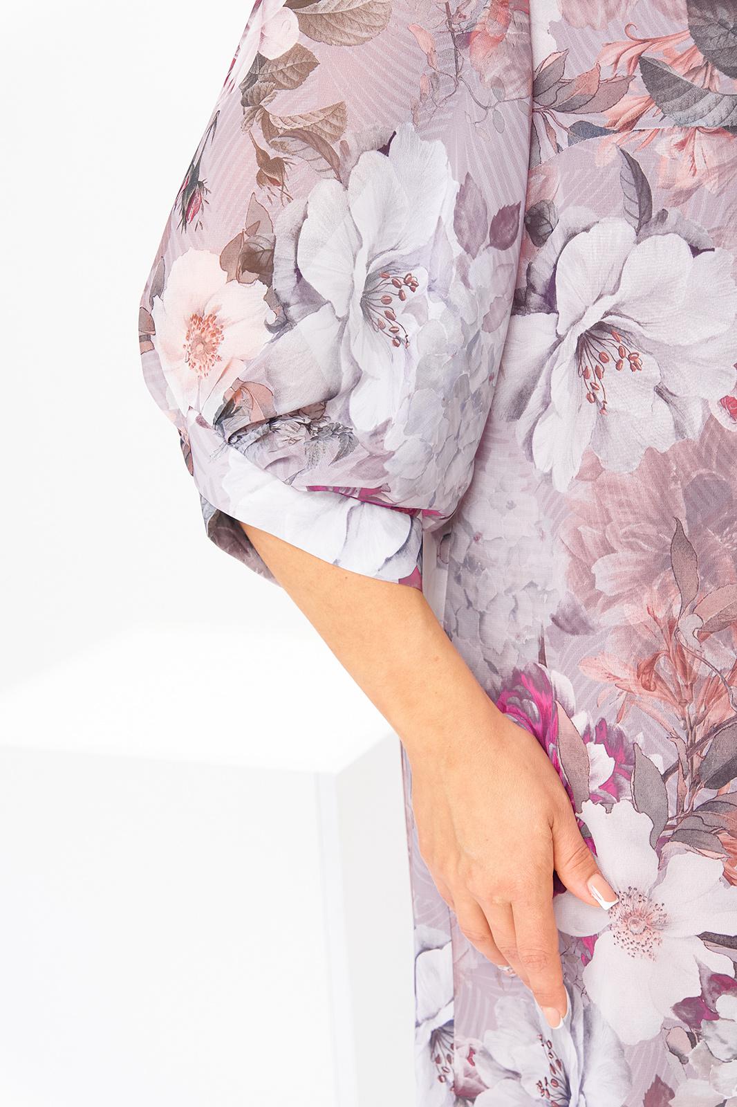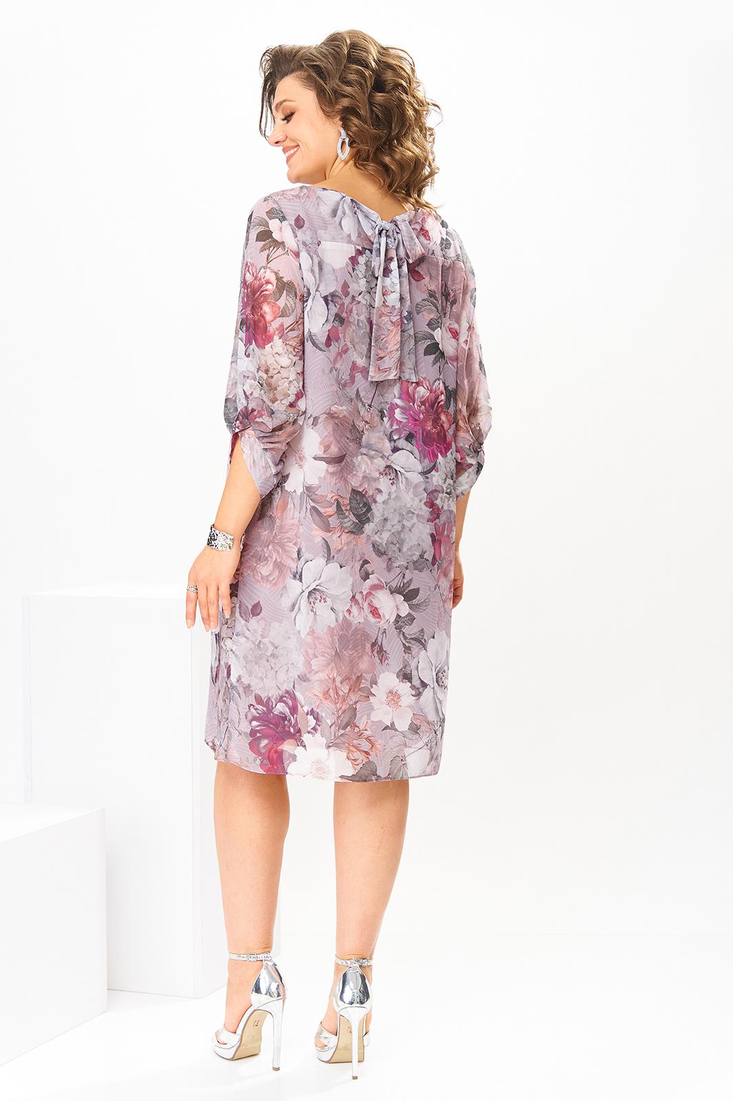 Платье женское относится к нарядной торжественной одежде. Платье женское прямого силуэта, длиной за колено. Перед с 2-мя нагрудными вытачками. Спинка с отрезной кокеткой с фигурным обтачным разрезом, фиксирующимся по горловине на 2-е обточные завязки. Горловина круглая, обтачная, без воротника. Рукав втачной, одношовный, длиной 3/4 с фигурным низом с 14-ю односторонними складками (по 7 с каждой стороны от угла манжеты), с притачной манжетой из отделочной ткани. Платье на подкладке. Платье без плечевых накладок.