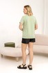 Джемпер полуприлегающего силуэта с втачным коротким рукавом. Форма горловины - круглая, обработана притачной бейкой из основного полотна. Низ изделия и рукавов обработаны на плоскошовной машине. Джемпер изготовлен из трикотажного полотна.