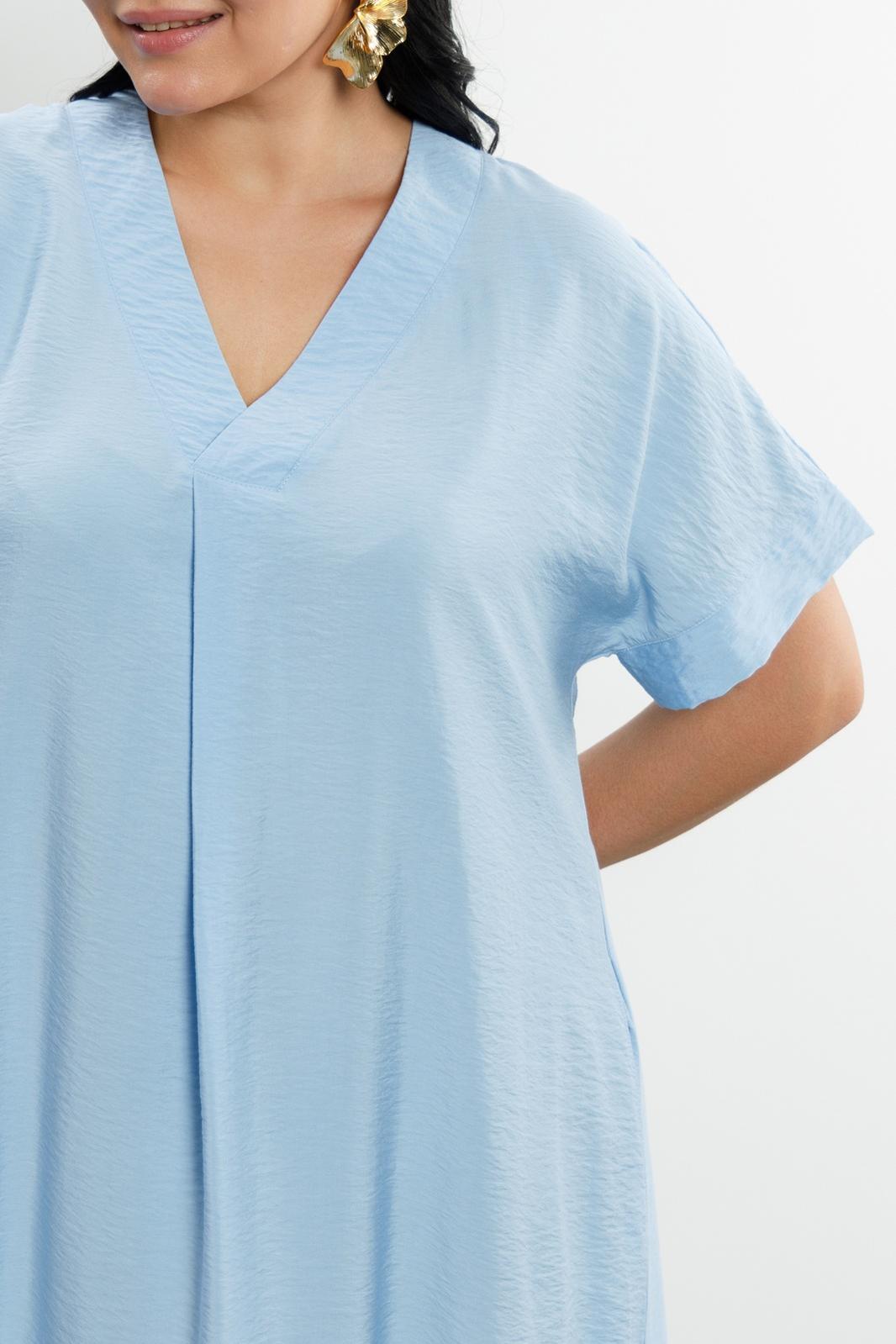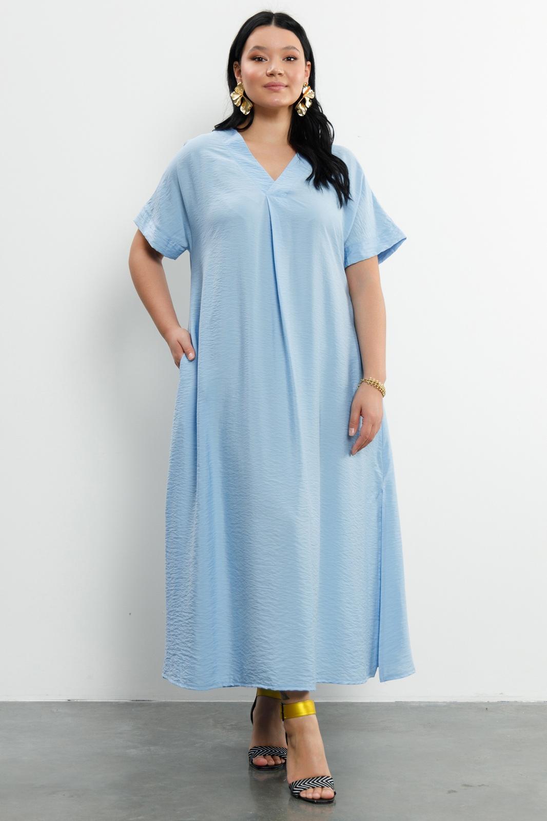 Это стильное и удобное платье из мягкой ткани станет идеальным выбором для создания повседневных и утончённых луков. Нежные оттенки придают образу лёгкость и универсальность, а простой и лаконичный крой обеспечивает комфорт в течение всего дня.
