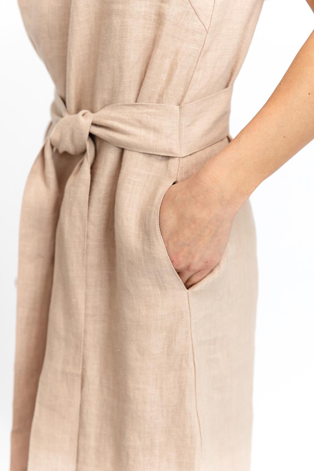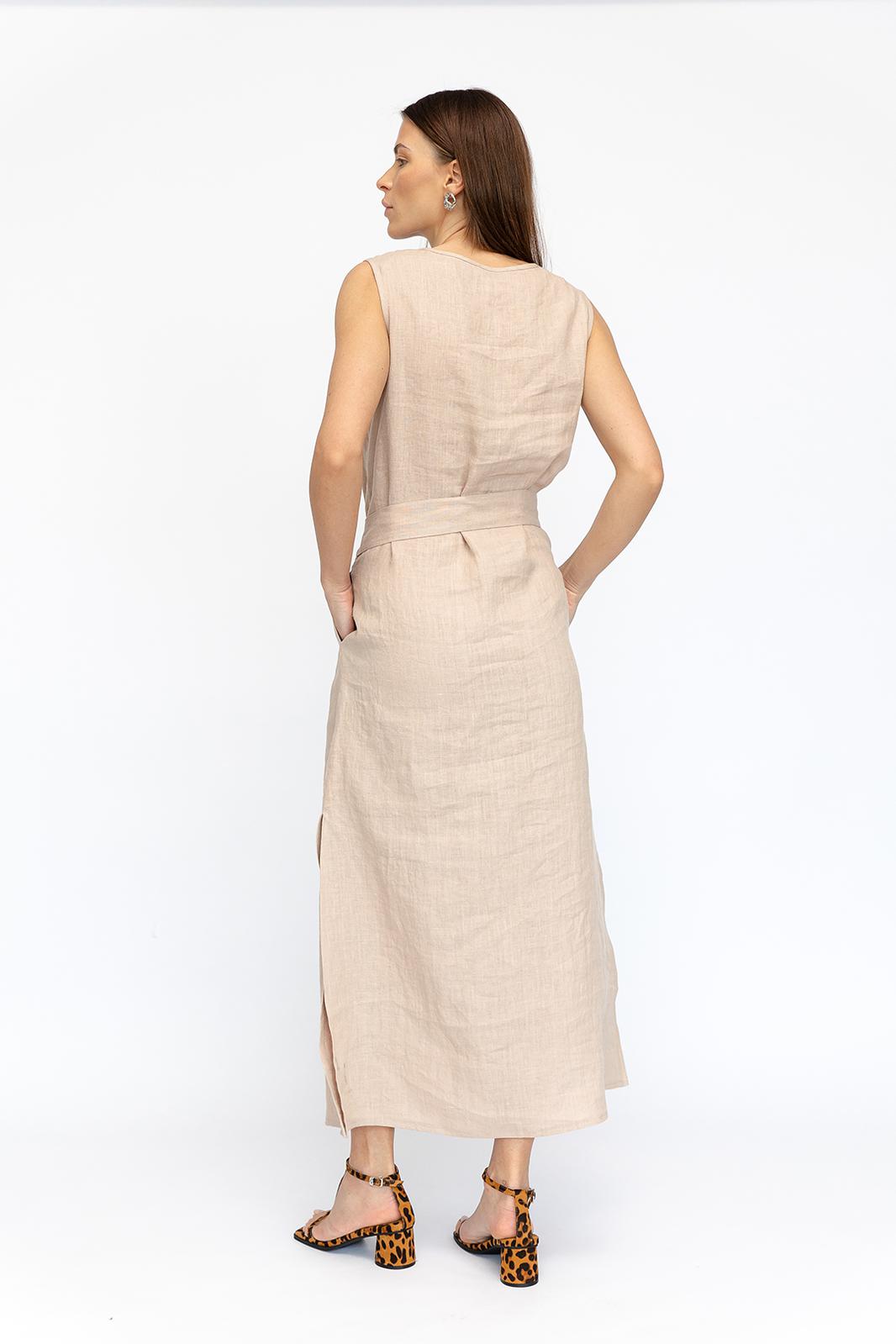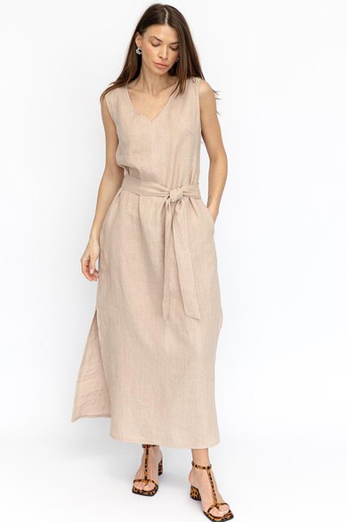 Пояс на талии подчеркивает силуэт, придавая платью элегантность и женственность.