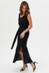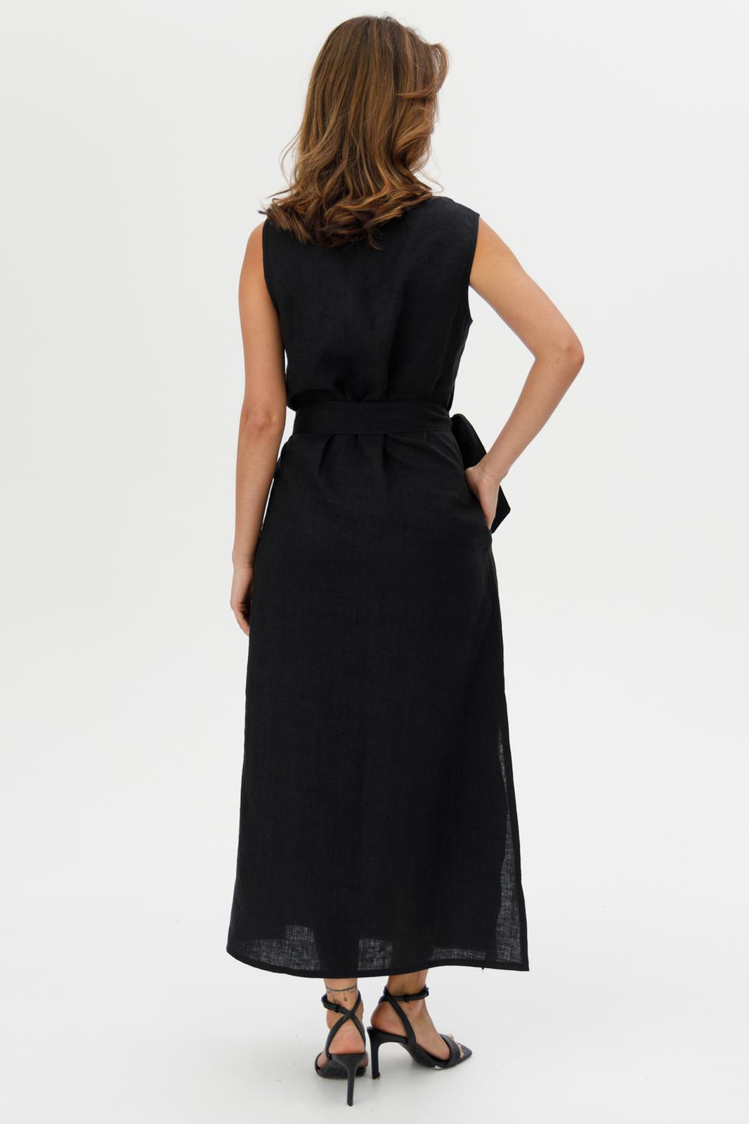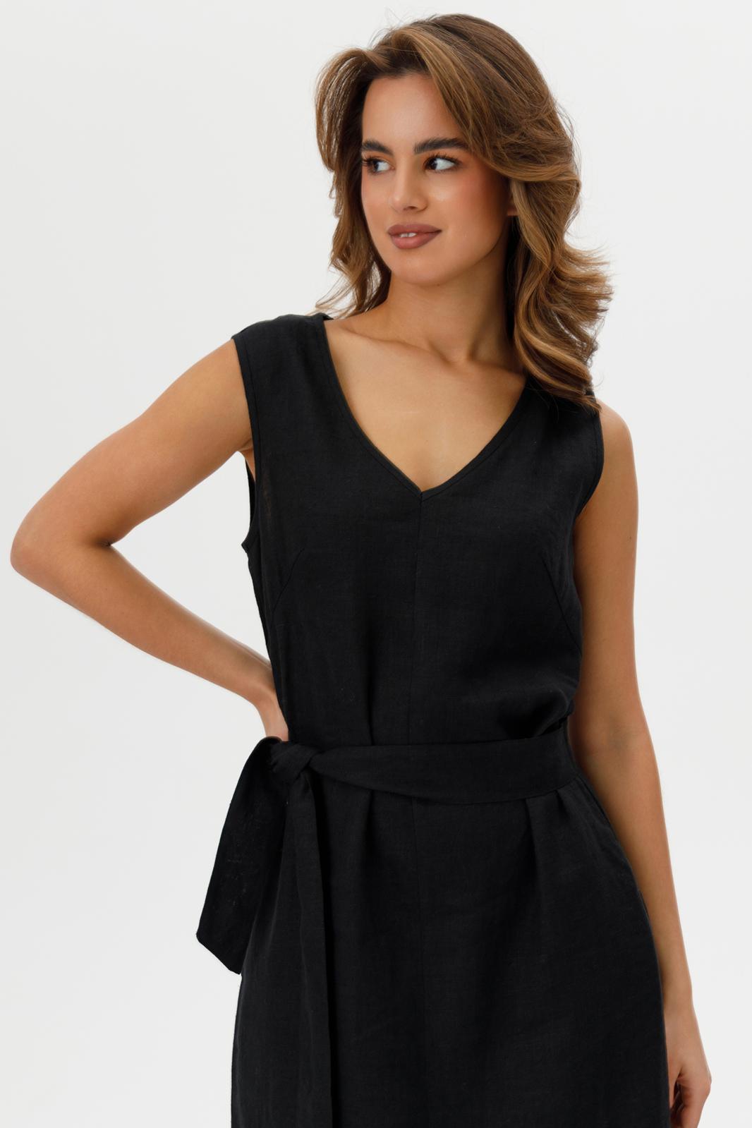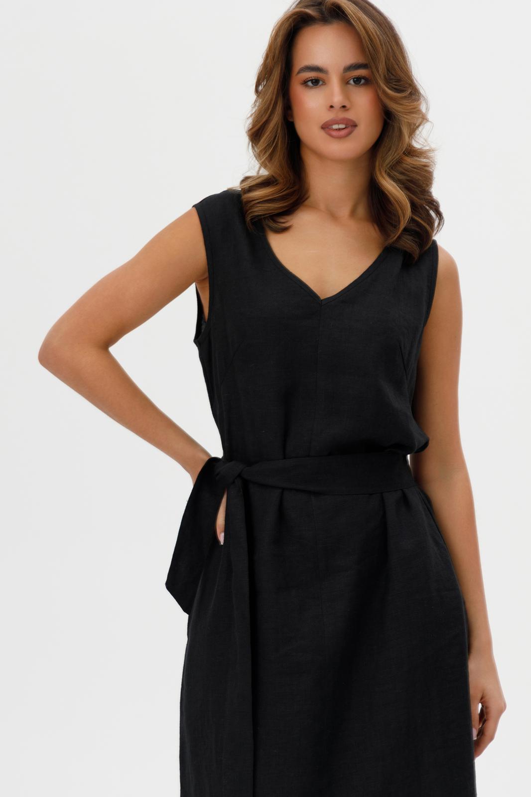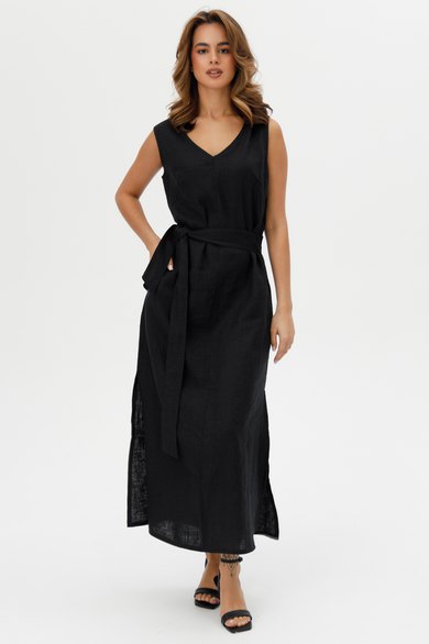 Пояс на талии подчеркивает силуэт, придавая платью элегантность и женственность.