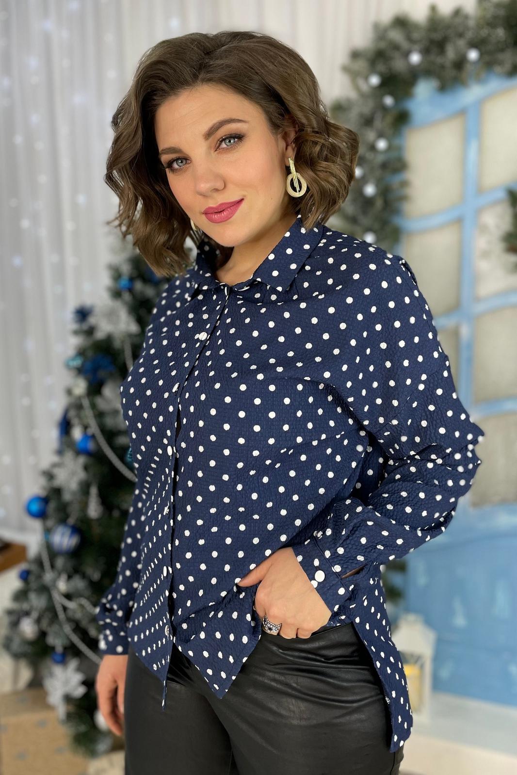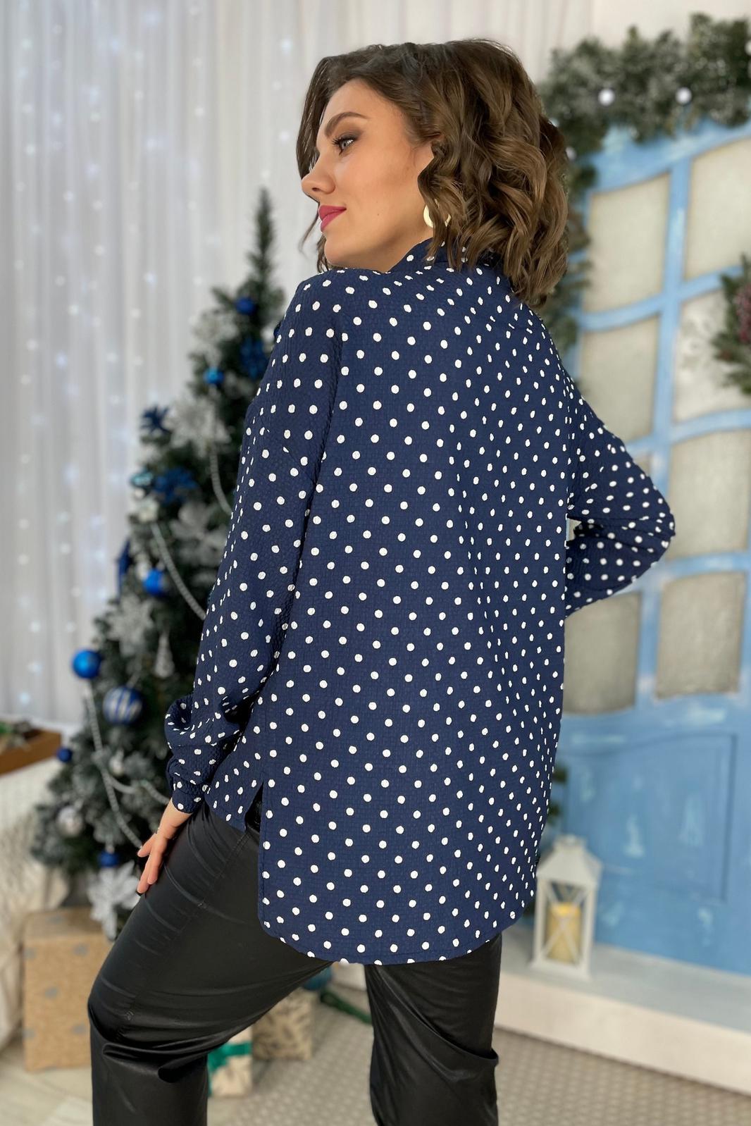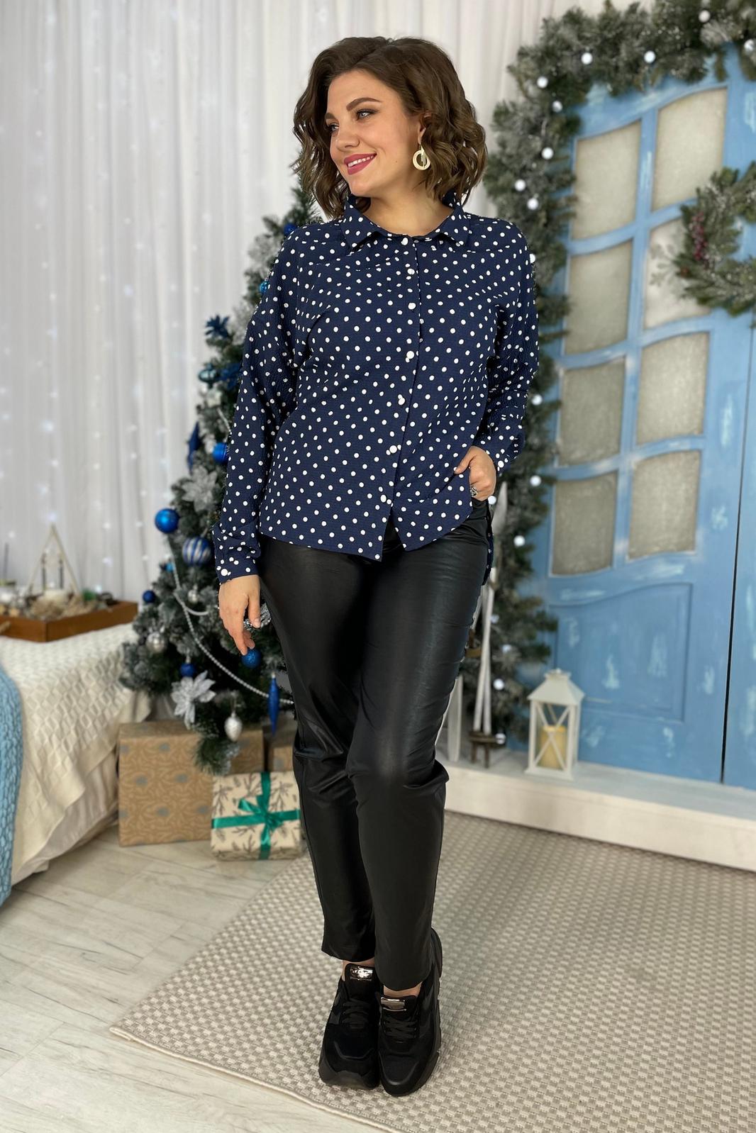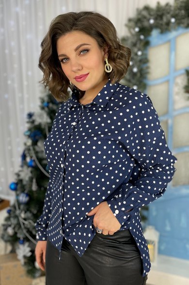 Блузка женская полуприлегающего силуэта со спущенным рукавом. Блузка с притачной планкой на петлях и пуговицах. Горловина оформлена воротником со стойкой. Перед блузки сделан короче чем спинка, по бокам разрезы. Рукав длинный ,низ рукава оформлоен притачной манжетой.