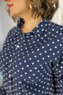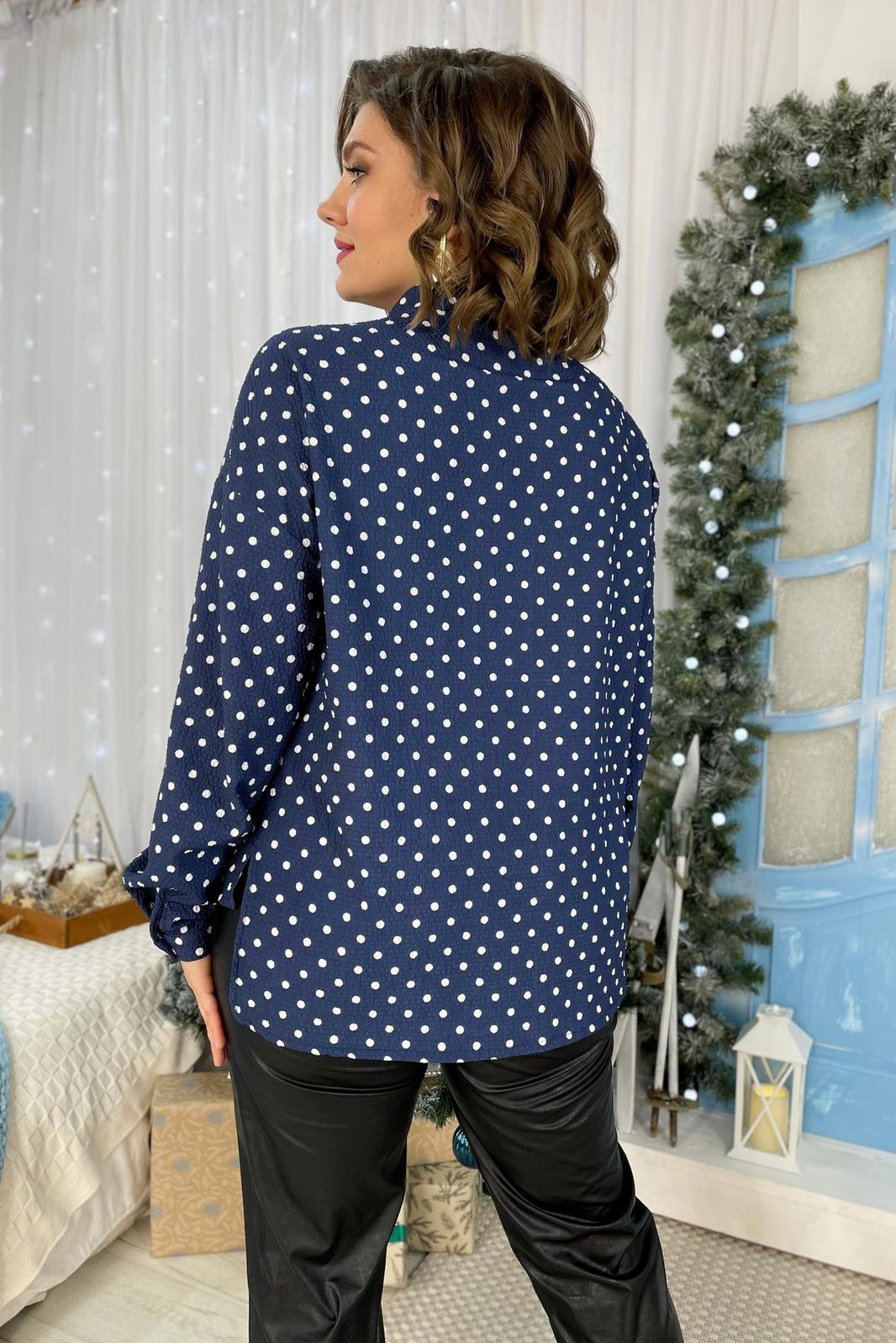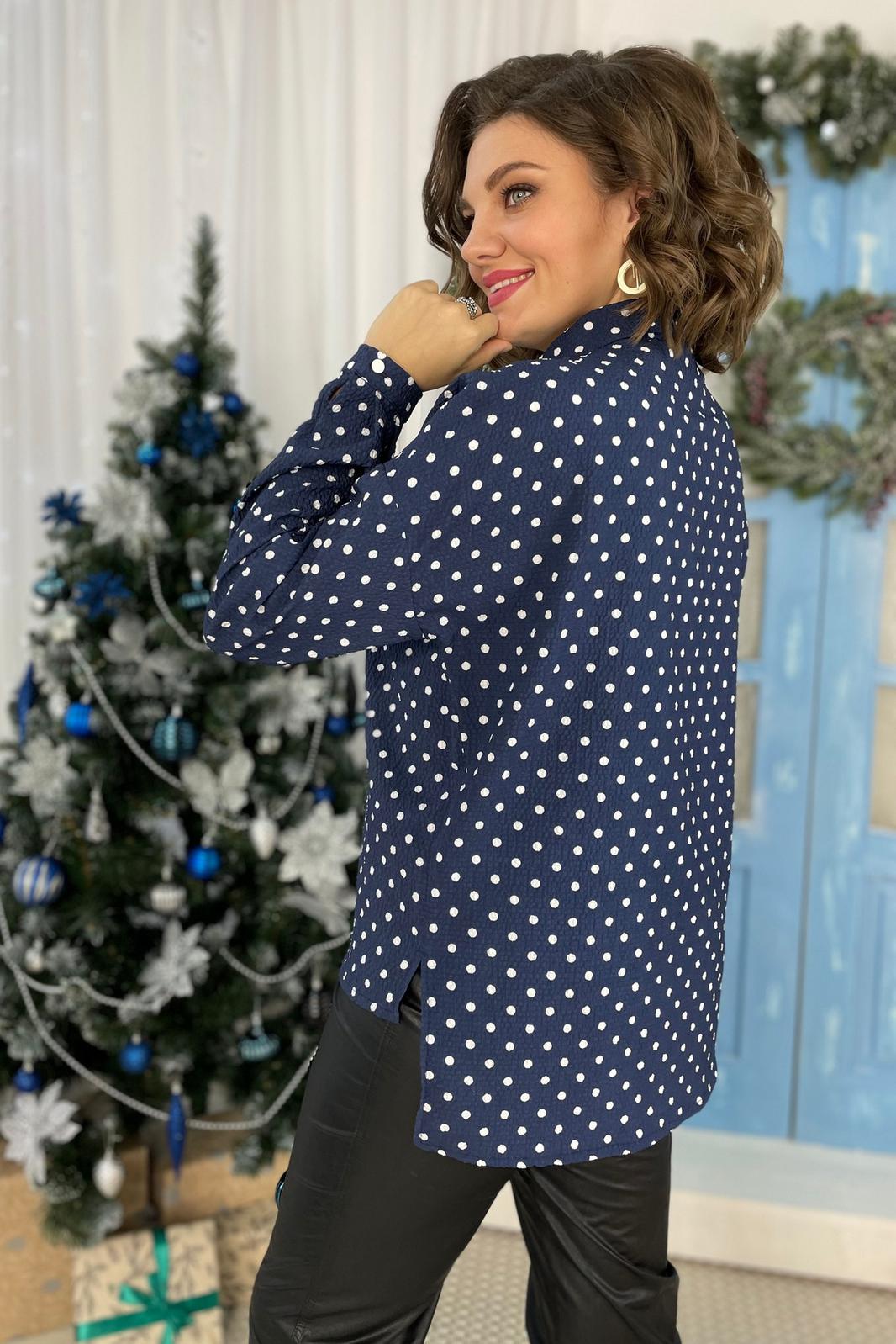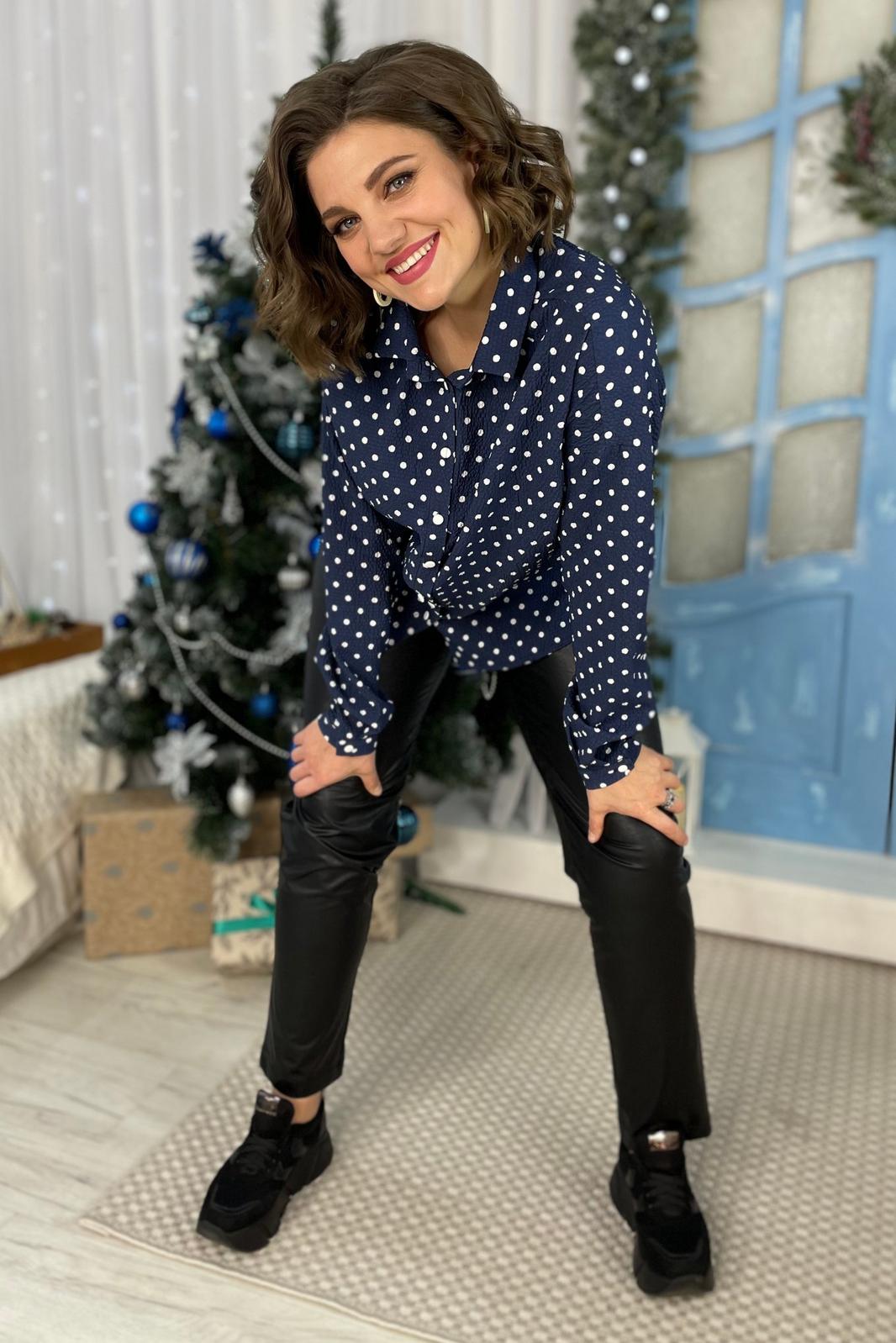 Блузка женская полуприлегающего силуэта со спущенным рукавом. Блузка с притачной планкой на петлях и пуговицах. Горловина оформлена воротником со стойкой. Перед блузки сделан короче чем спинка, по бокам разрезы. Рукав длинный ,низ рукава оформлоен притачной манжетой.