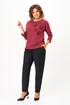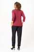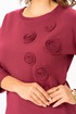 Джемпер женский из трикотажной хлопковой ткани (двунитка). По переду джемпера расположены декоративные элементы. Спущенное плечо, рукав 3/4. Низ рукава обработан манжетой. Вырез горловины круглый, оформлен бейкой.
