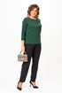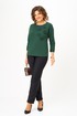 Джемпер женский из трикотажной хлопковой ткани (двунитка). По переду джемпера расположены декоративные элементы. Спущенное плечо, рукав 3/4. Низ рукава обработан манжетой. Вырез горловины круглый, оформлен бейкой.