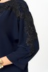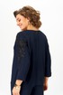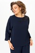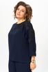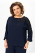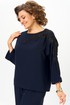 Блузка женская из текстильной ткани с цельнокроеным рукавом. Прямого силуэта. По переду блузки настрочена аппликация. По спинке расположен средний шов. Рукав 3/4, низ рукава с манжетой. Вырез горловины круглый, обработан обтачкой. Блузка застегивается на петлю-пуговицу.