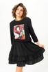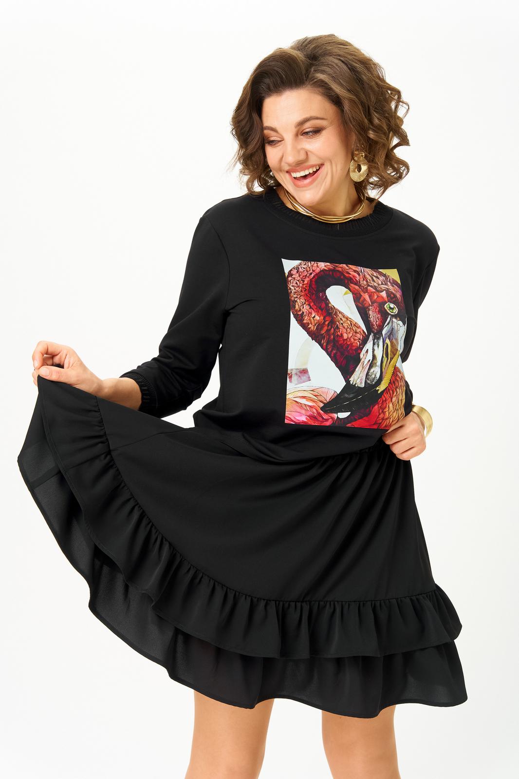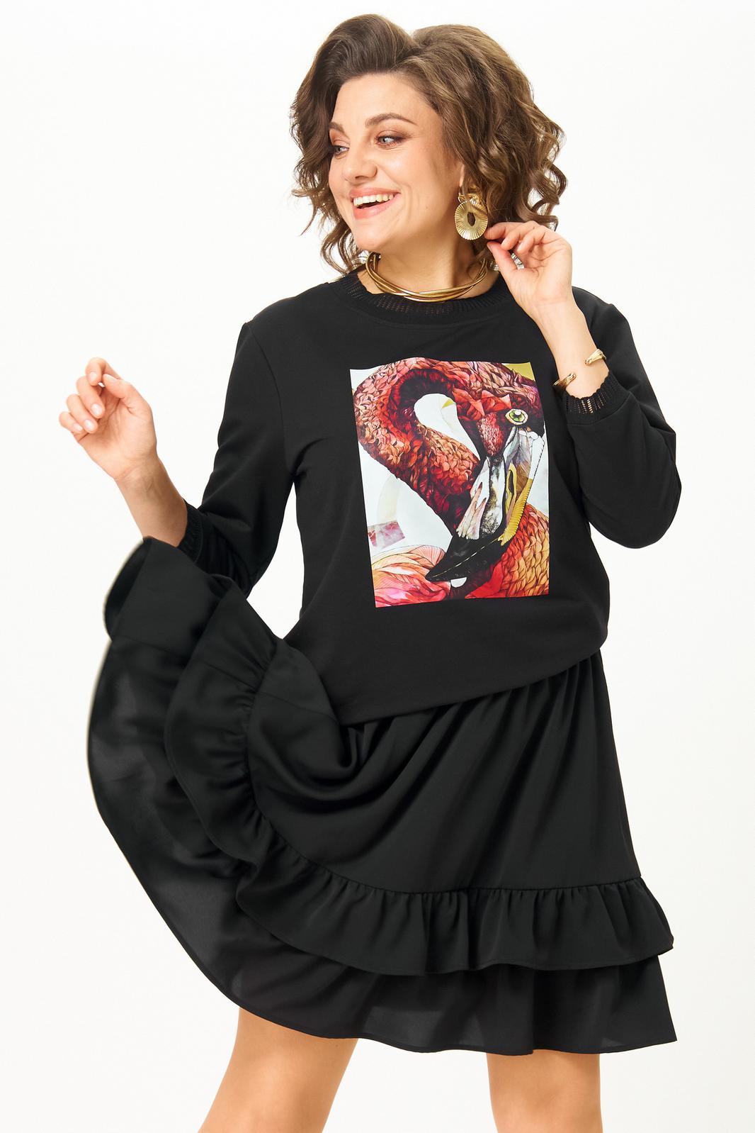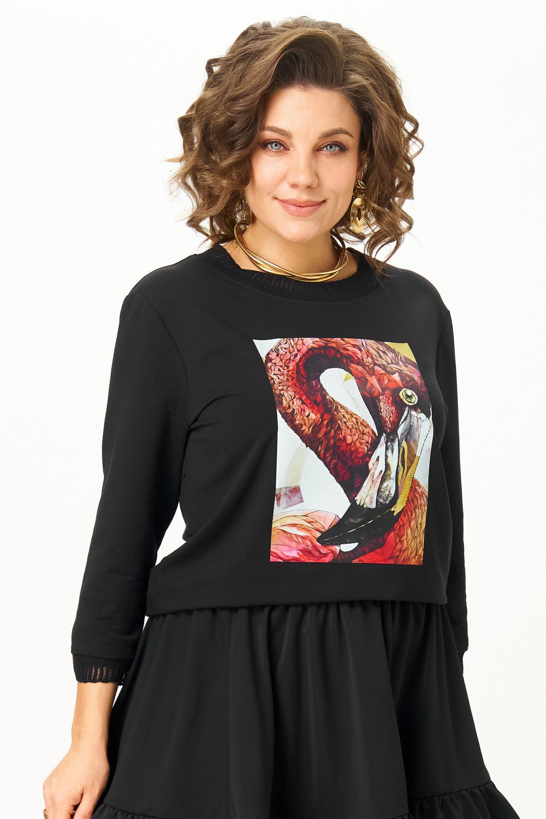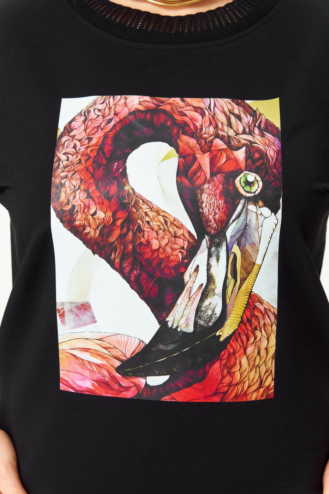 Джемпер женский из трикотажной хлопковой ткани (двунитка). По переду расположен принт. Рукав втачной 3/4, прямой. Вырез горловины круглый. Вырез горловины и низ рукава обработаны довязом.