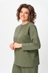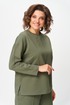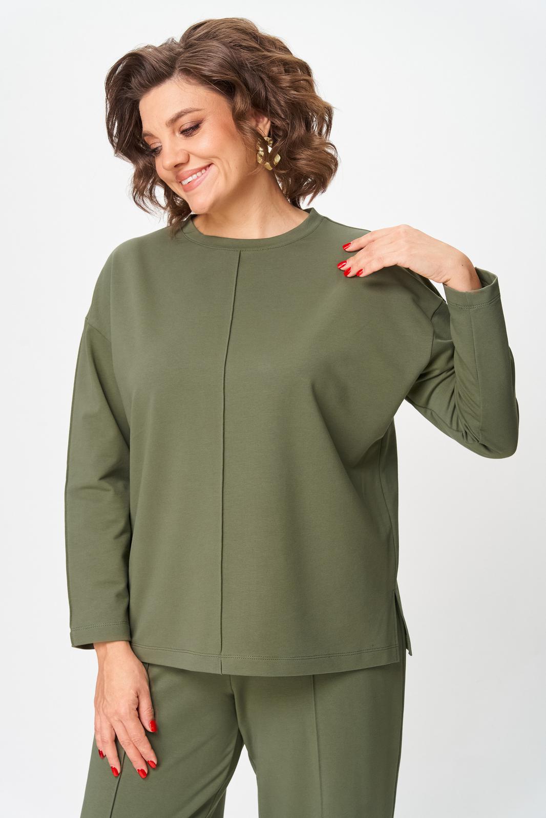 Джемпер женский из трикотажной ткани, прямого силуэта. По центру переда прострочен отделочный защип. Спинка со средним швом. В боковых швах расположены разрезы. Спущенный рукав. По центру рукава отделочный защип. Вырез горловины круглый, оформлен притачной бейкой.