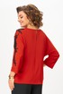 Блузка женская из текстильной ткани с цельнокроеным рукавом. Прямого силуэта. По переду блузки настрочена аппликация. По спинке расположен средний шов. Рукав 3/4, низ рукава с манжетой. Вырез горловины круглый, обработан обтачкой. Блузка застегивается на петлю-пуговицу.