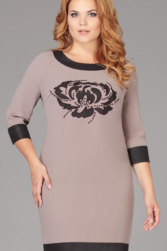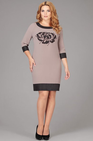 Прекрасная универсальная модель полуприлегающего силуэта. Перед платья украшен дизайнерским элементом – вышивка с применением кожи. По спинке платье декорировано позолоченной молнией, как украшение. Низ платья, рукава и горловина со вставкой из мягкой кожи.