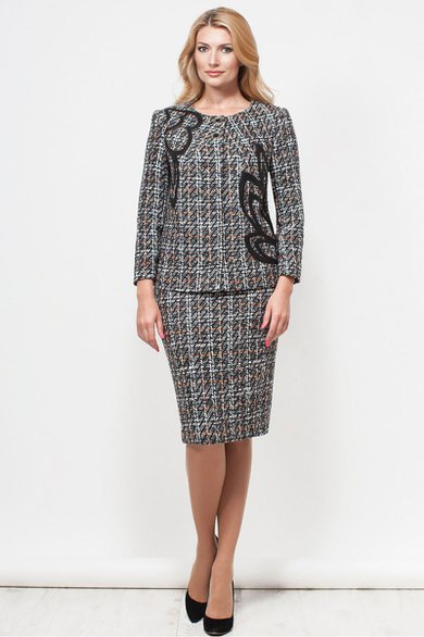 Костюм двойка (жакет+юбка). Длина жакета по спинке 60.5 см, длина рукава 56 см, длина юбки 62 см.