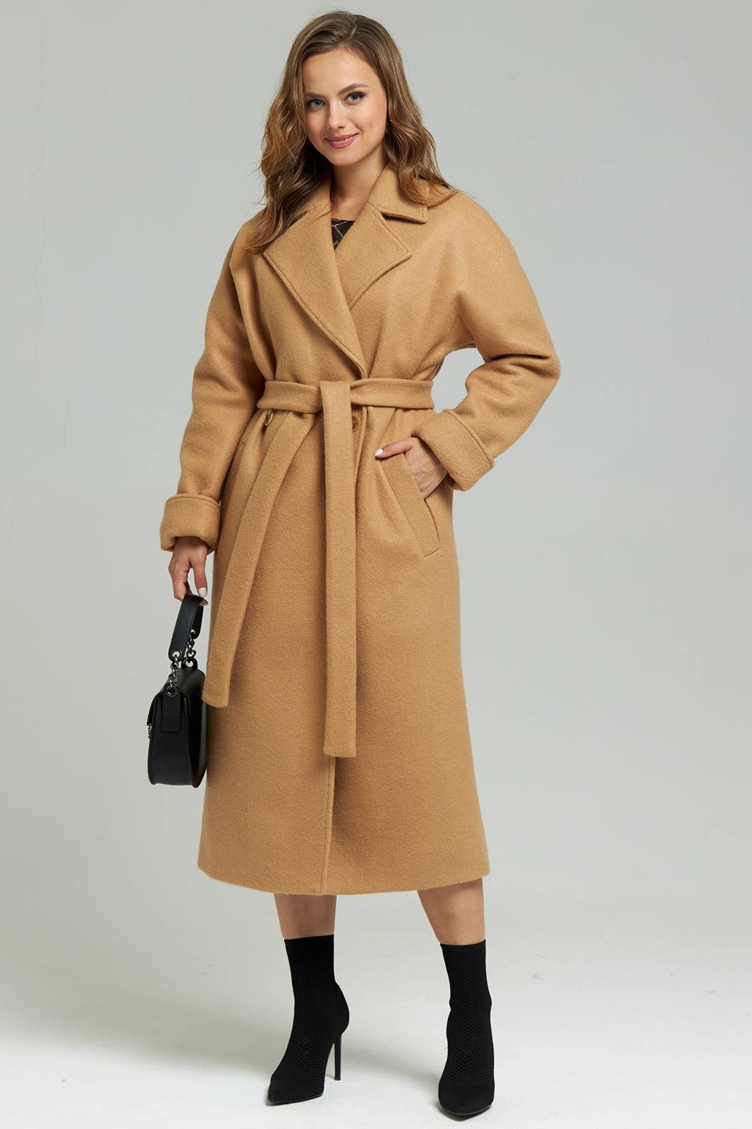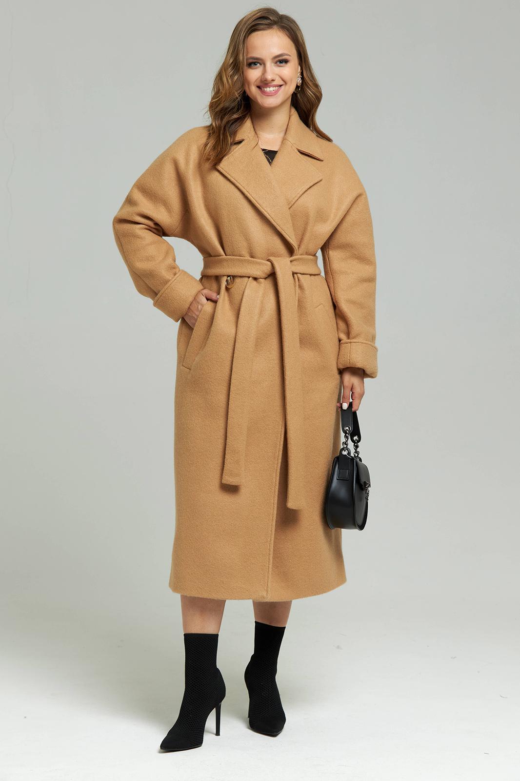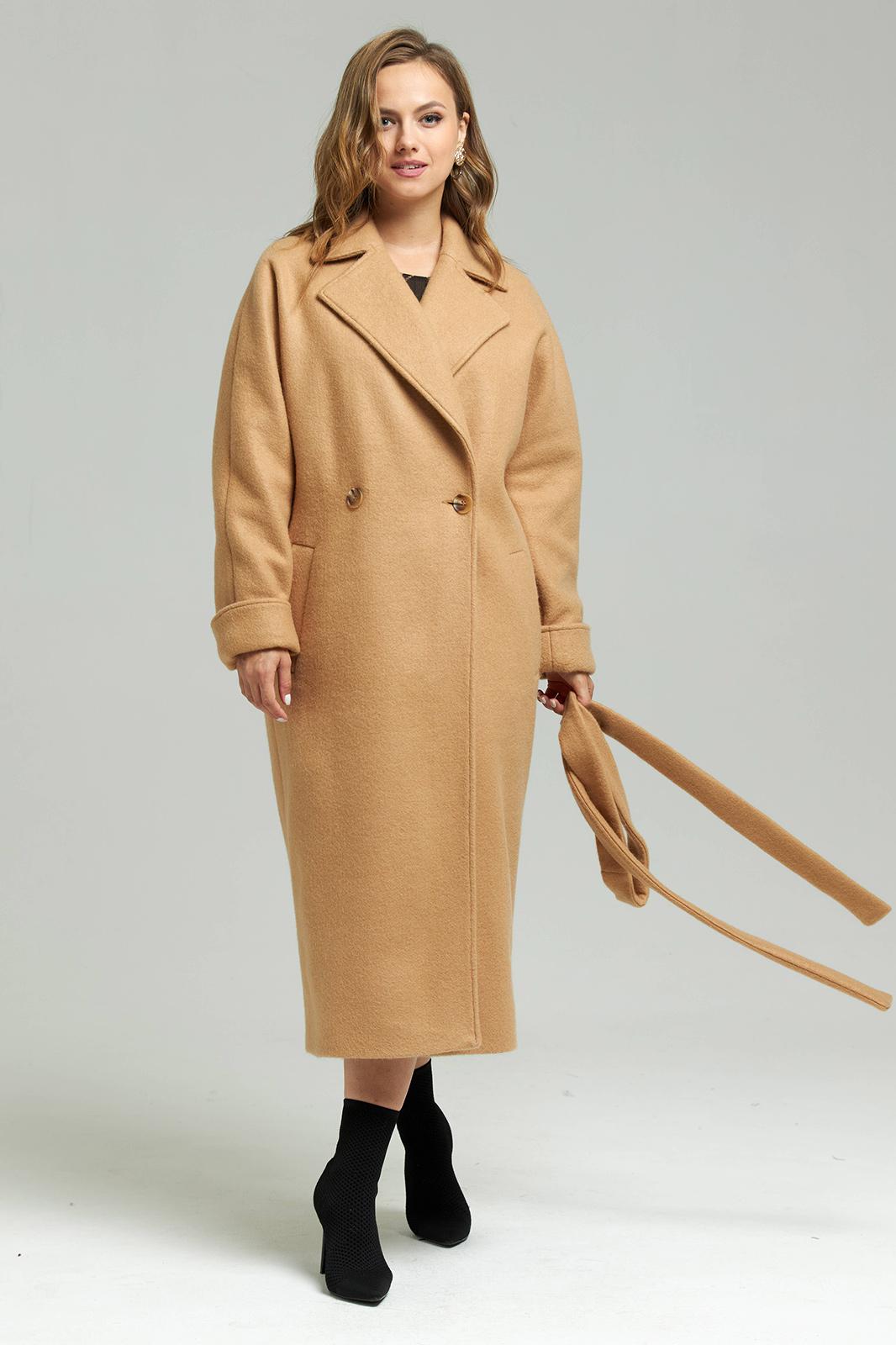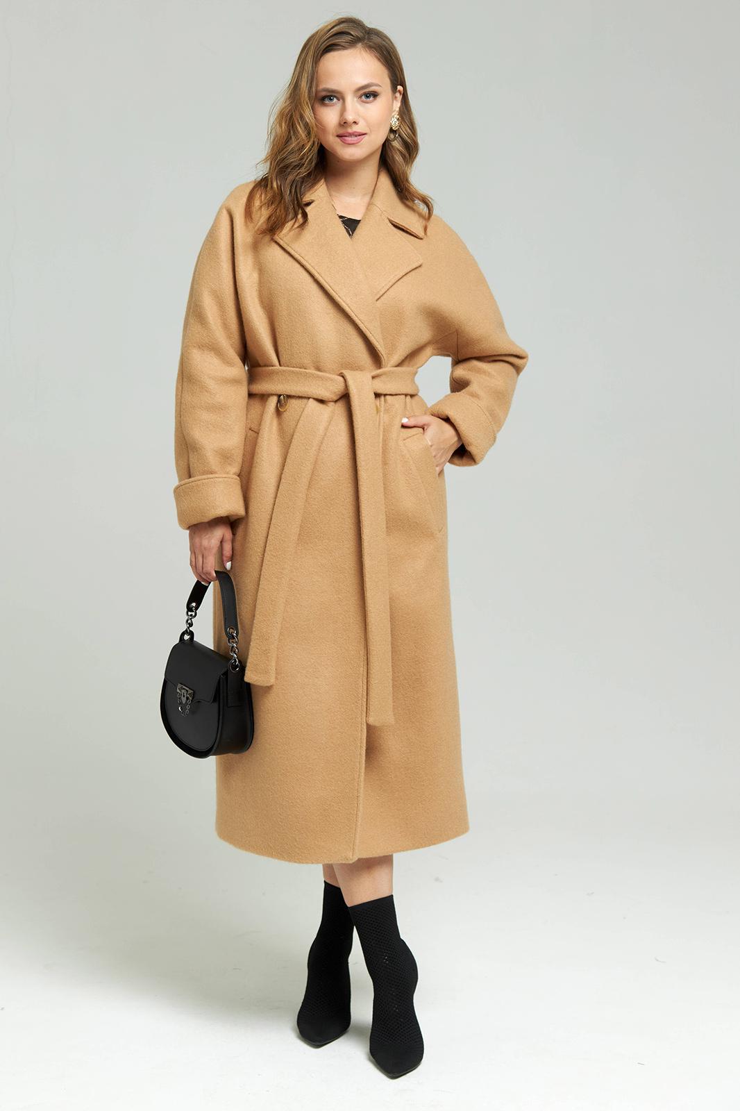 Пальто женское прямого силуэта . По переду функциональные карманы и застежка на две петли-пуговицы. Спинка со средним швом. По переду рукав цельнокроенный, по спинке – реглан. В изделии подкладка и съемный пояс.
