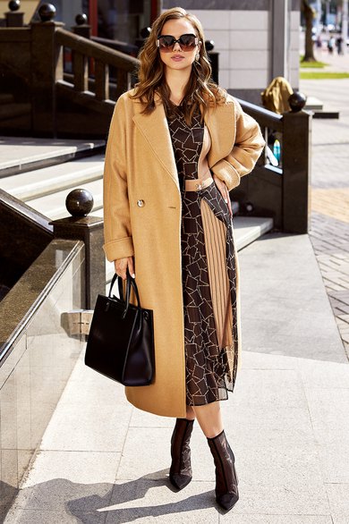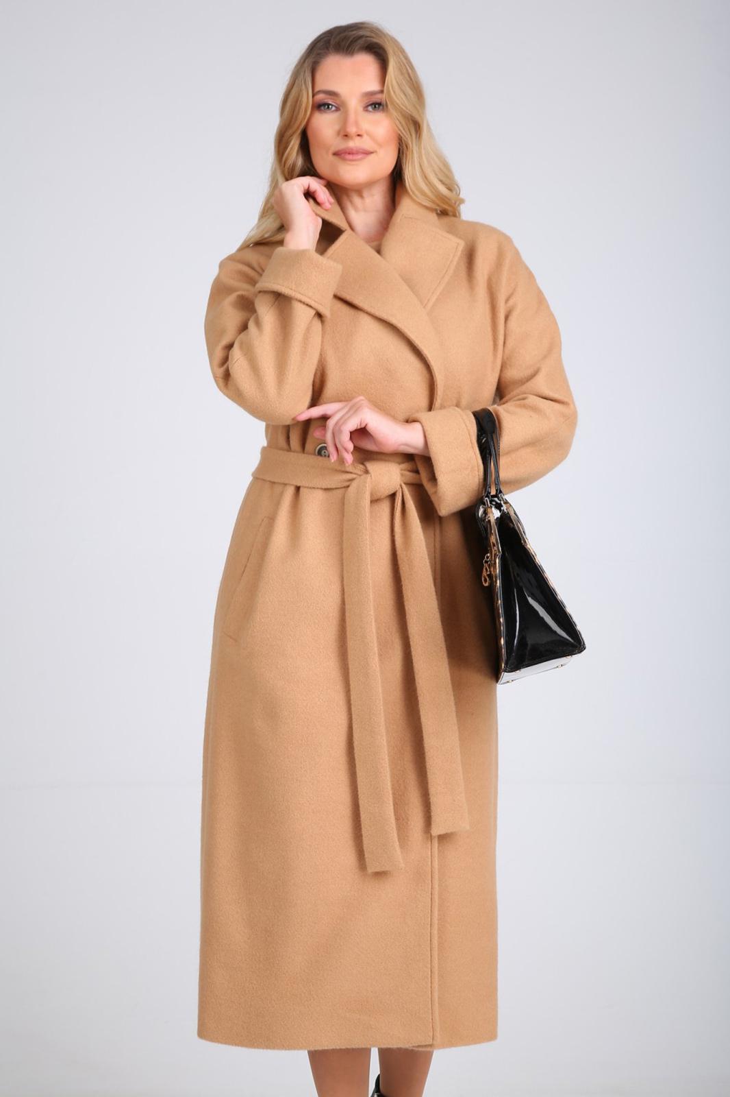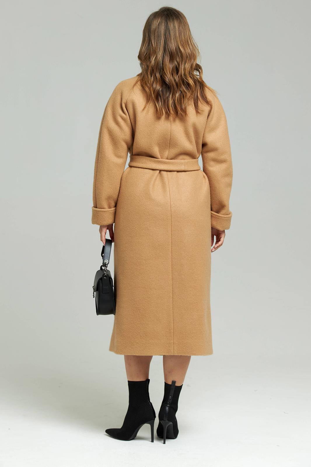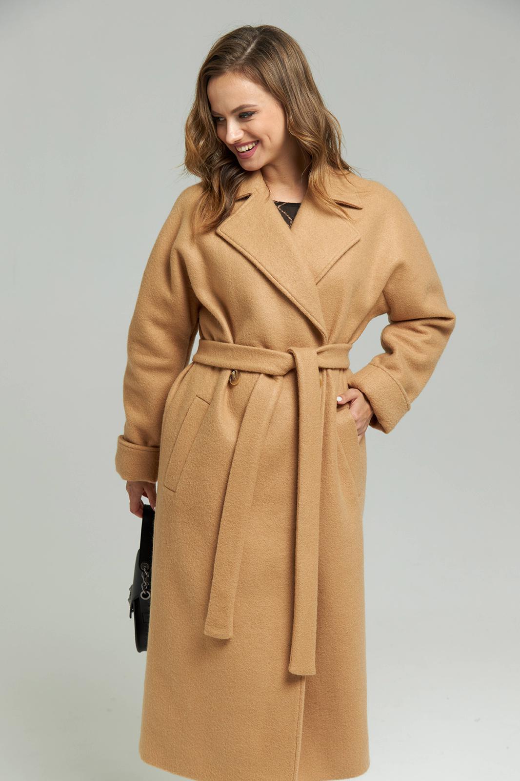 Пальто женское прямого силуэта . По переду функциональные карманы и застежка на две петли-пуговицы. Спинка со средним швом. По переду рукав цельнокроенный, по спинке – реглан. В изделии подкладка и съемный пояс.