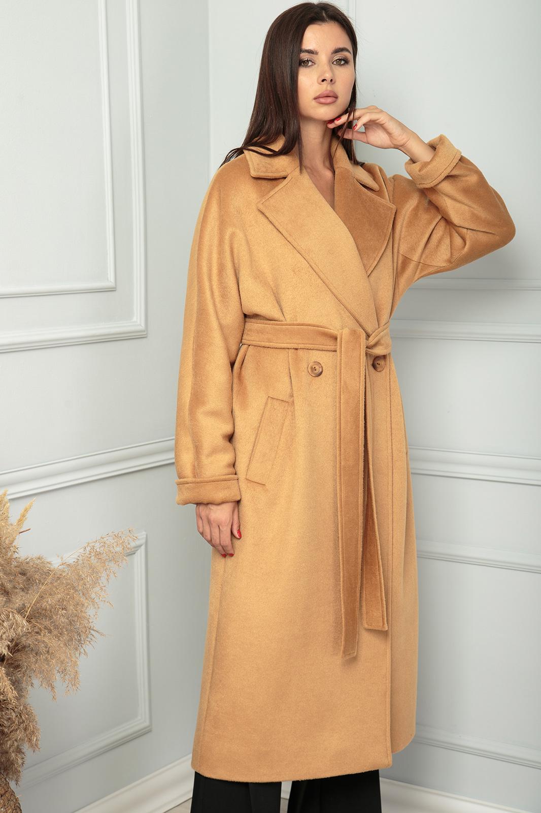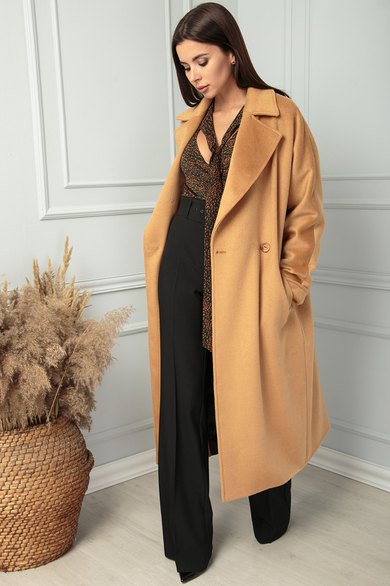 Пальто женское прямого силуэта из мягкой шерстяной и вискозной ткани.