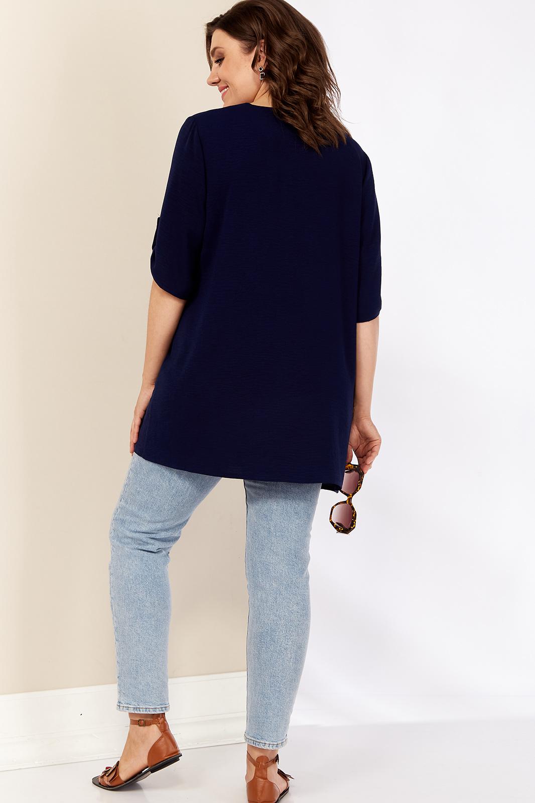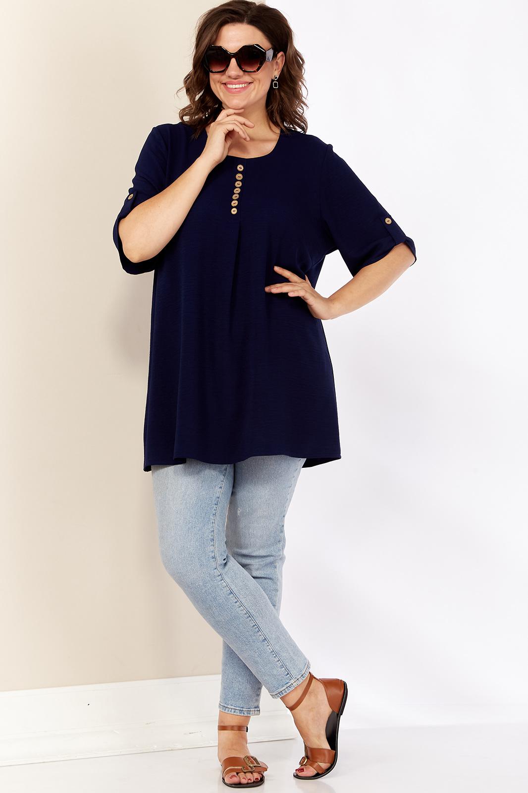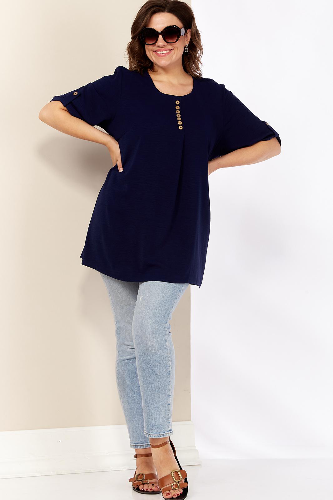 4053 Блуза из мягкой струящейся ткани. Свободный, стильный, удобный и отличный выбор для яркого лета. Блузка прямого силуэта свободной формы с коротким рукавом с патой на пуговице. Перед с нагрудными вытачками. Вырез горловины округой формы. Полочка оформлена поперечной складкой и декоративным элементом в виде имитации застежки на пуговицы. Прекрасный выбор для летнего гардероба в сочетании с брюками, джинсами или шортами. Длина изделия по спинке 77 см. Длина рукава 33 см.