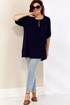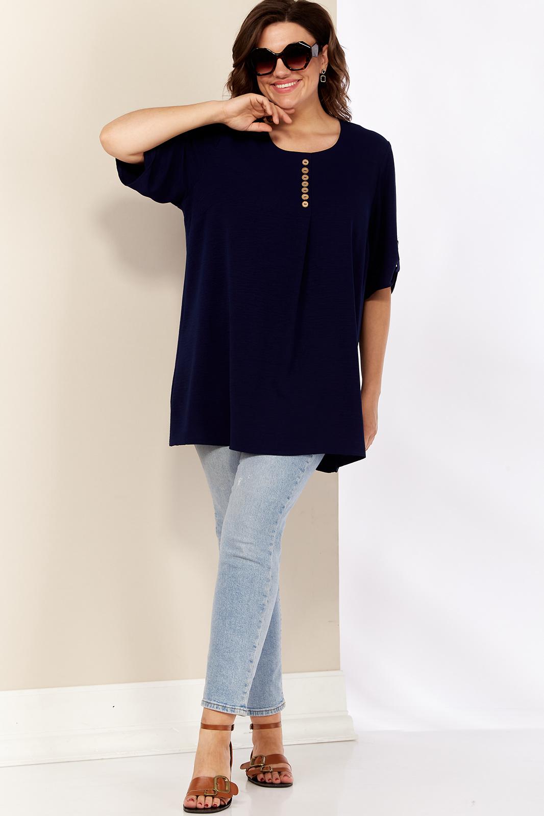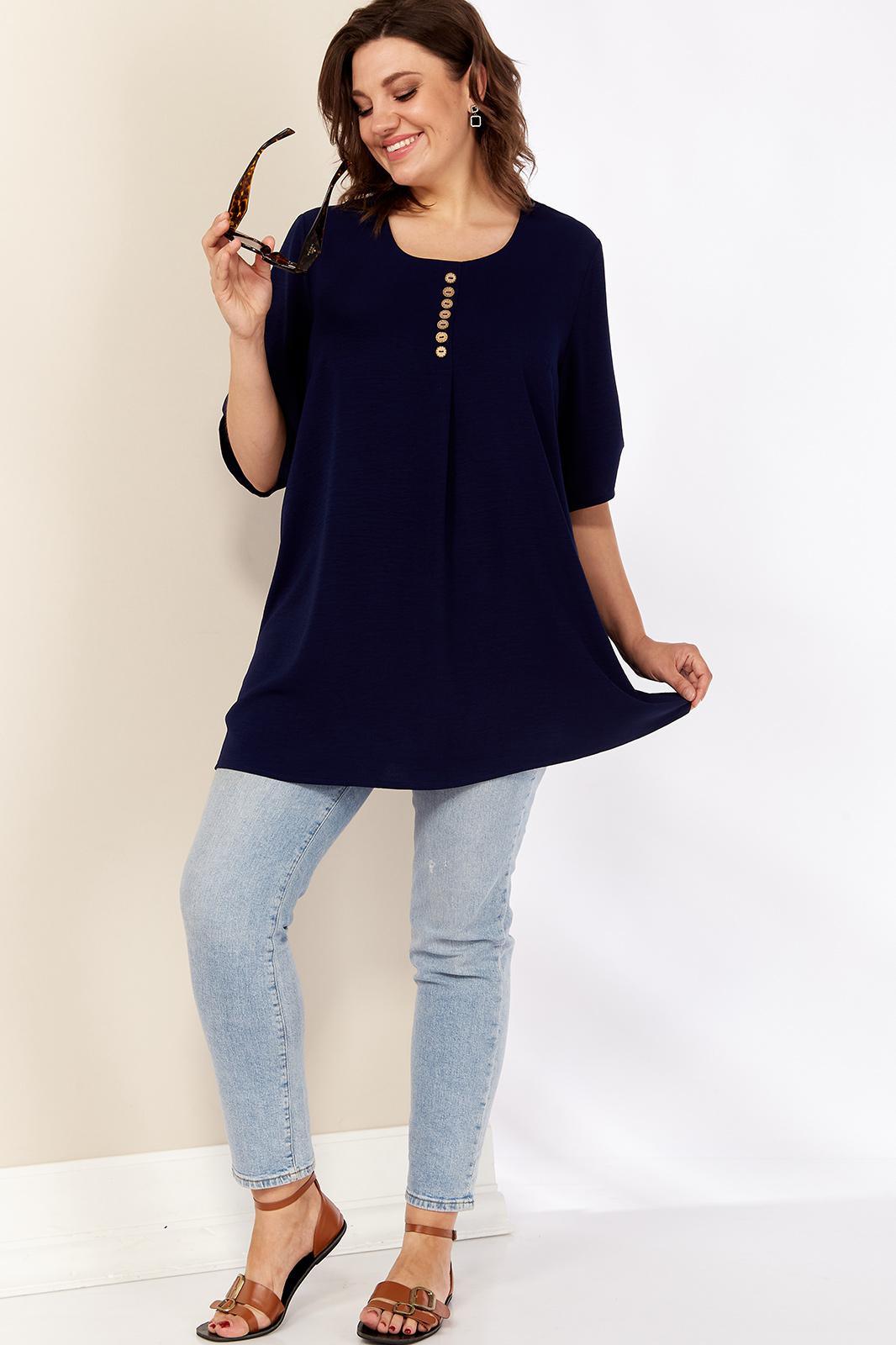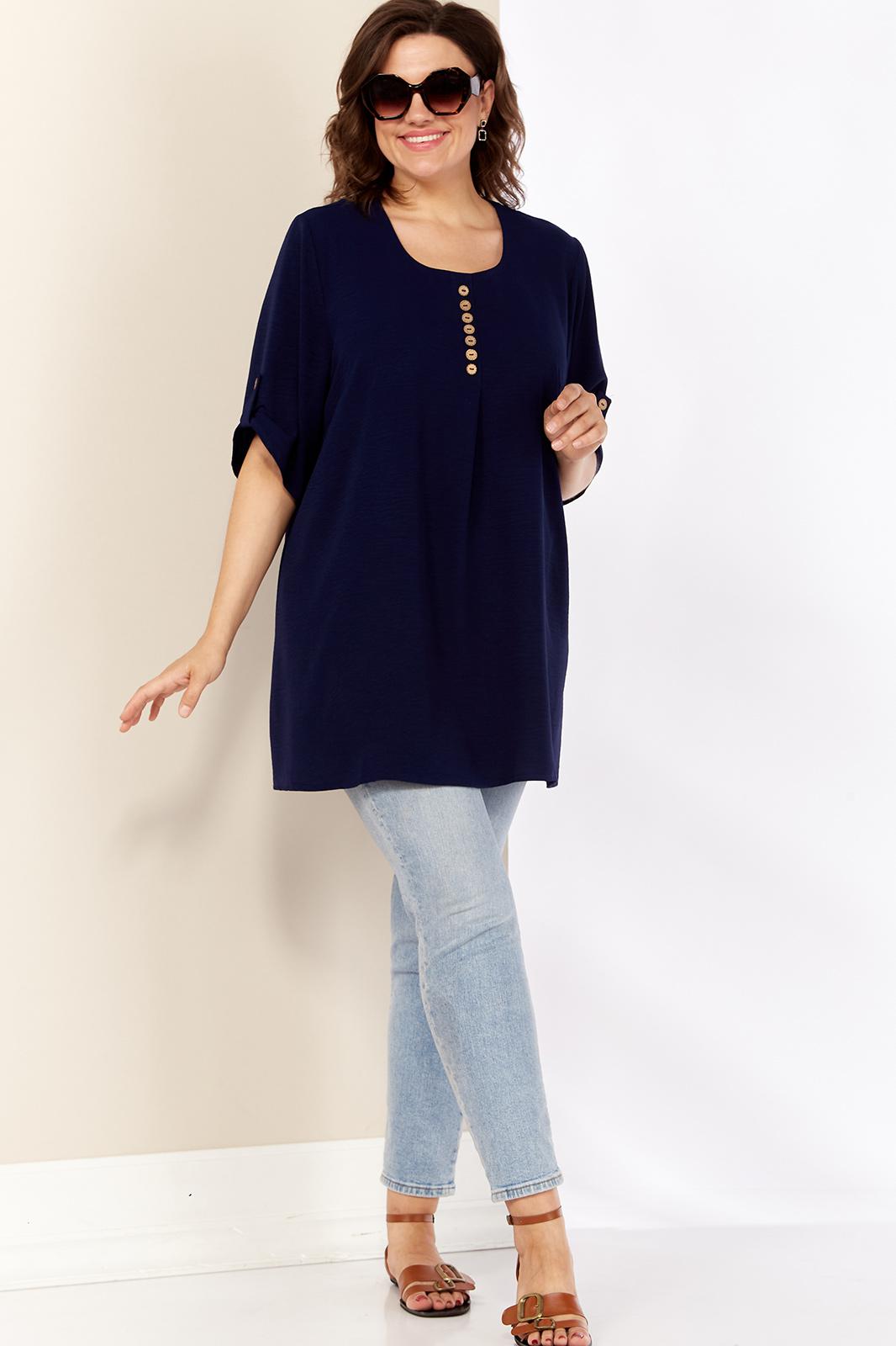 4053 Блуза из мягкой струящейся ткани. Свободный, стильный, удобный и отличный выбор для яркого лета. Блузка прямого силуэта свободной формы с коротким рукавом с патой на пуговице. Перед с нагрудными вытачками. Вырез горловины округой формы. Полочка оформлена поперечной складкой и декоративным элементом в виде имитации застежки на пуговицы. Прекрасный выбор для летнего гардероба в сочетании с брюками, джинсами или шортами. Длина изделия по спинке 77 см. Длина рукава 33 см.