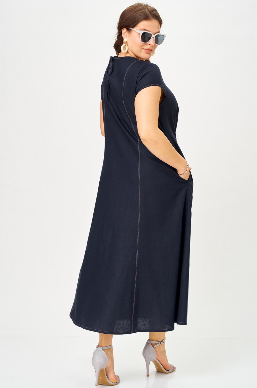 Платье с рельефами отстроченными контрастной ниткой однозначно стройнит и визуально вытягивает фигуру. По переду рельефы заканчиваются разрезами, что придает пикантности и комфорта в носке. Длина макси. По спинке горловины завязка-шнурок.