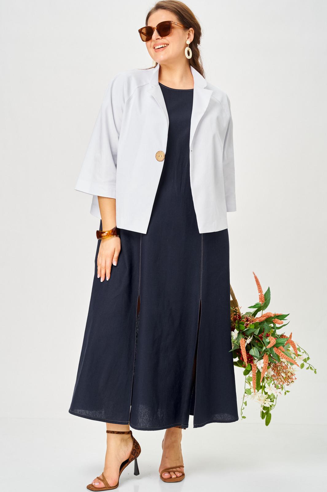 Свободная посадка, жакет летний без подкладки. Рукав реглан. Застежка на одну пуговицу.