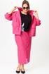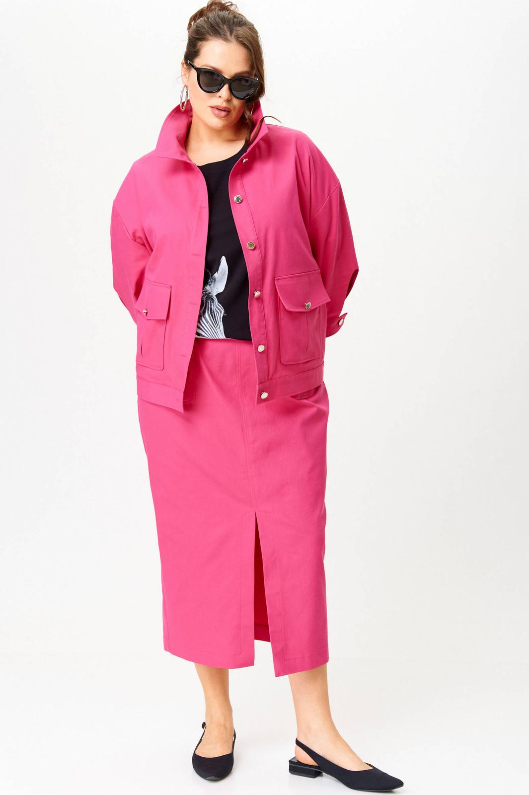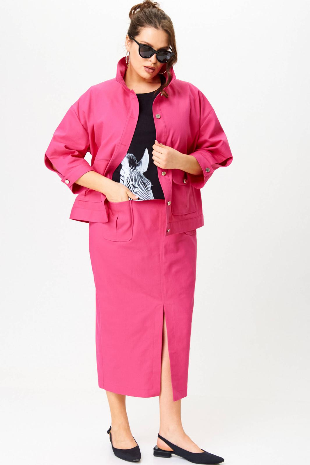 Юбка прямая, слегка заужена к низу, по переду разрез. Пояс частично на резинке.