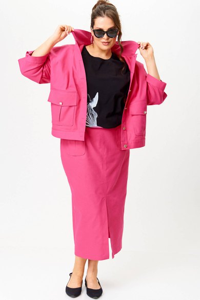 Если Вам нравится мода на джинсовые вещи, то сплошной деним - для Вас. Костюм двух предметный, состоит из куртки-жакета и юбки. Юбка без подкладки.