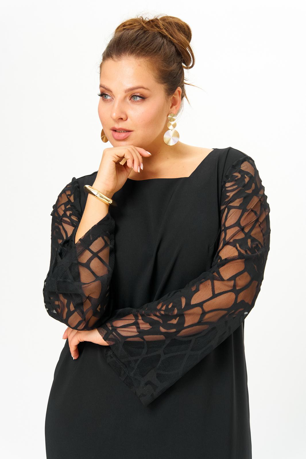 Базовая посадка. Полуприлегающий силуэт. Асимметричный вырез горловины. Рукава выполнены из мягкой трикотажной сетки.
