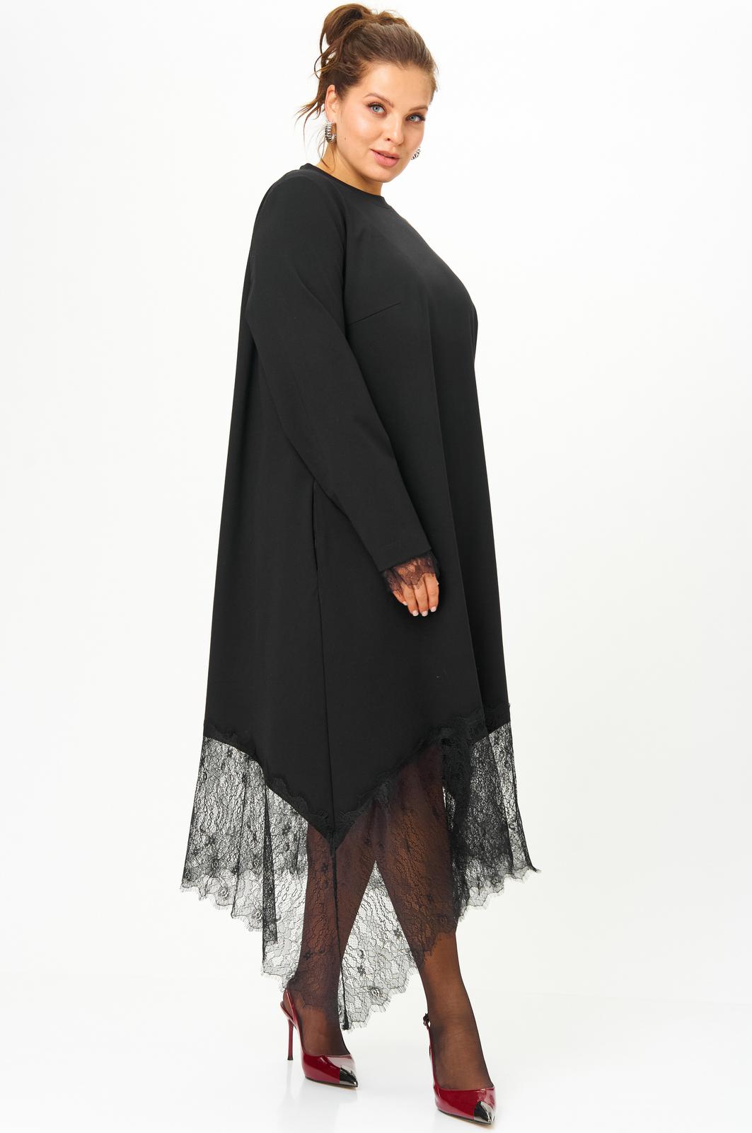 Эффектное платье выполнено из трикотажного полотна. Платье свободного трапециевидного силуэта, длиной макси. Рукав втачной длинный с манжеткой из кружева. В боковых швах имеются функциональные карманы. Низ платья оформлен кружевным воланом. Длинный фасон дает возможность создания стильного образа. Если немножко пофантазировать с обувью получится много стильных и интересных вариантов образа.