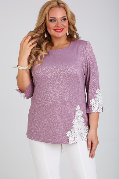 Блузка женская полуприлегающего силуэта с втачными одношовными рукавами. Перед с рельефами от проймы до низа. В нижней части одного рельефа элегантное настрочное шитье. Нагрудные вытачки по переду, выходящие из рельефа. Горловина округлой формы. По нижней части рукавов также настрочное шитье. Спинка цельная с застежкой в верхней части на навесную петлю и пуговицу.