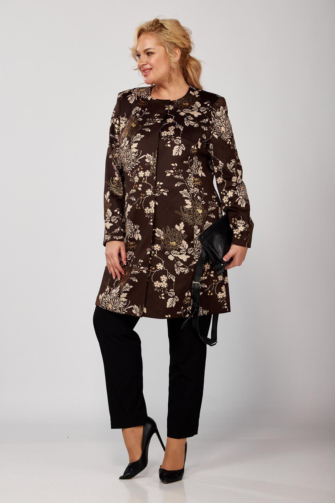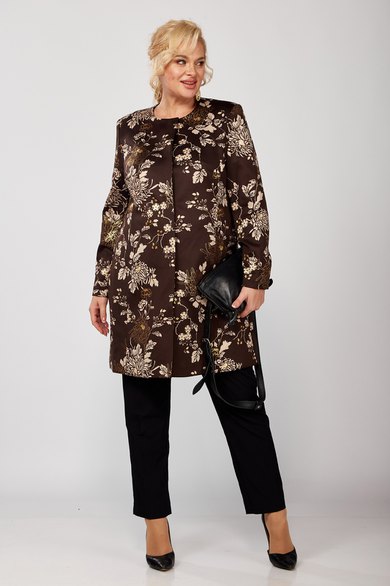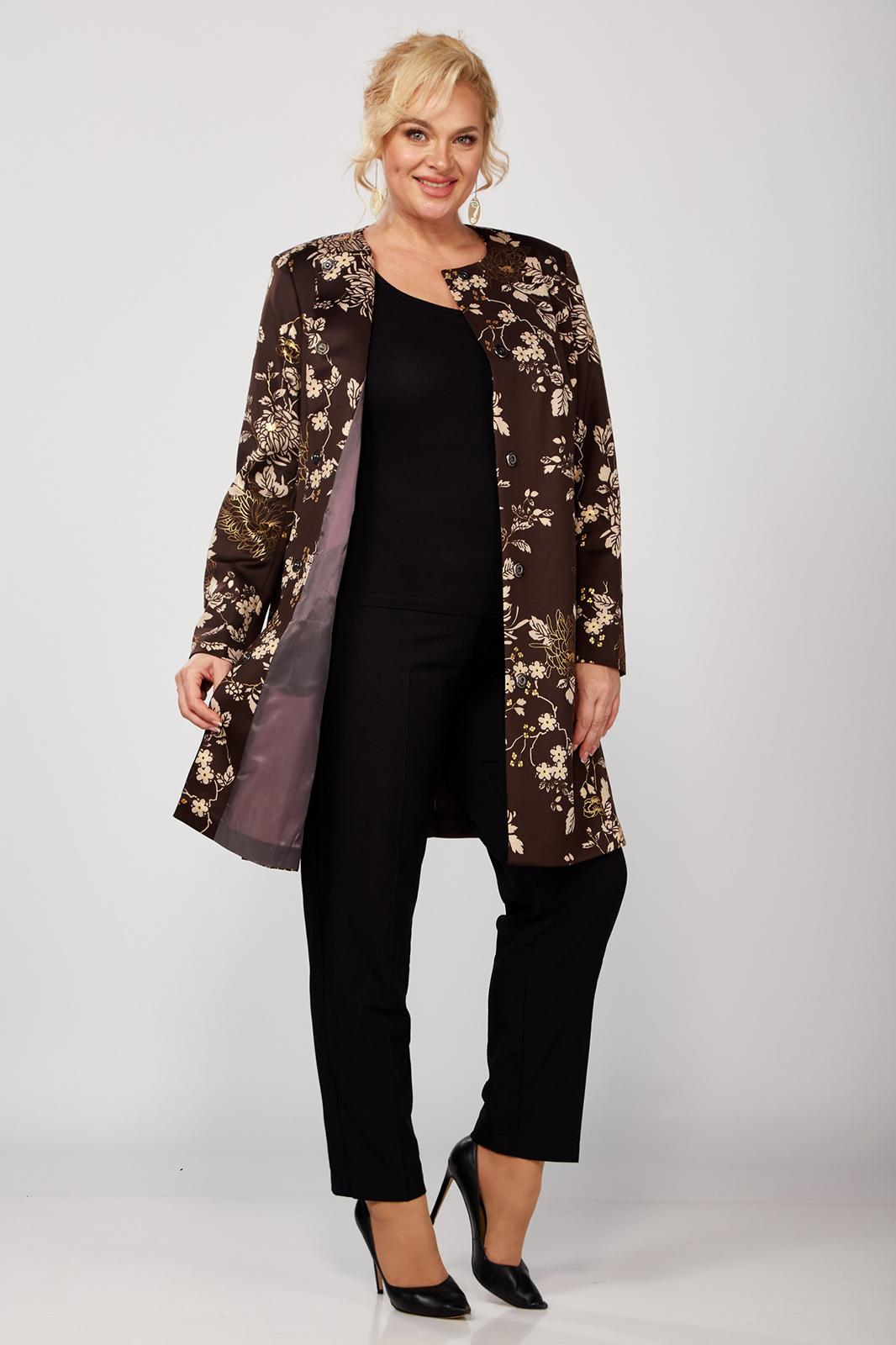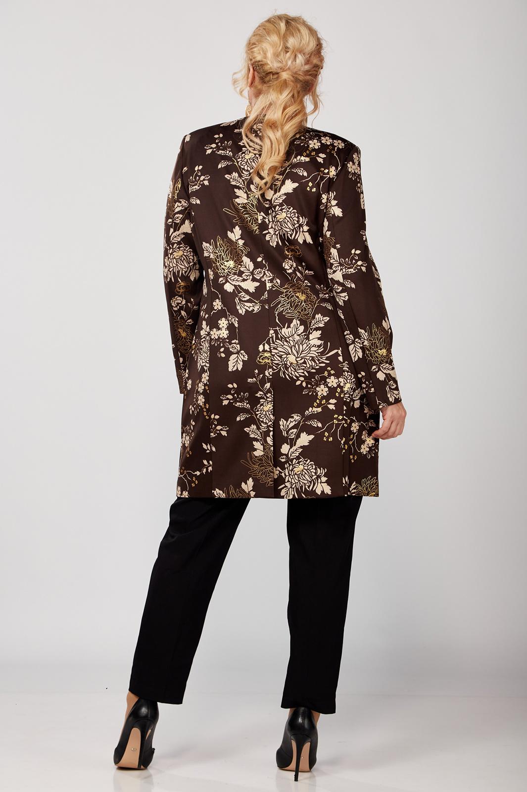 Жакет женский удлиненный прямого силуэта, с втачными двухшовными рукавами. Перед с рельефами от проймы до низа. Горловина округлая. Застежка центральная потайная, на кнопках. В рельефных швах обработаны функциональные карманы. Спинка со средним швом и рельефами. По низу обработана шлица.