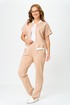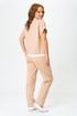 Комплект женский, двухпредметный, состоящий из свитшота и брюк. Свитшот с коротким спущенным рукавом, с довязами-резинкой по горловине и по низу. Рукав с отворотом, свитшот с застежкой-молнией по переду. Брюки зауженные к низу, в боковых швах карманы, пояс на резинке.