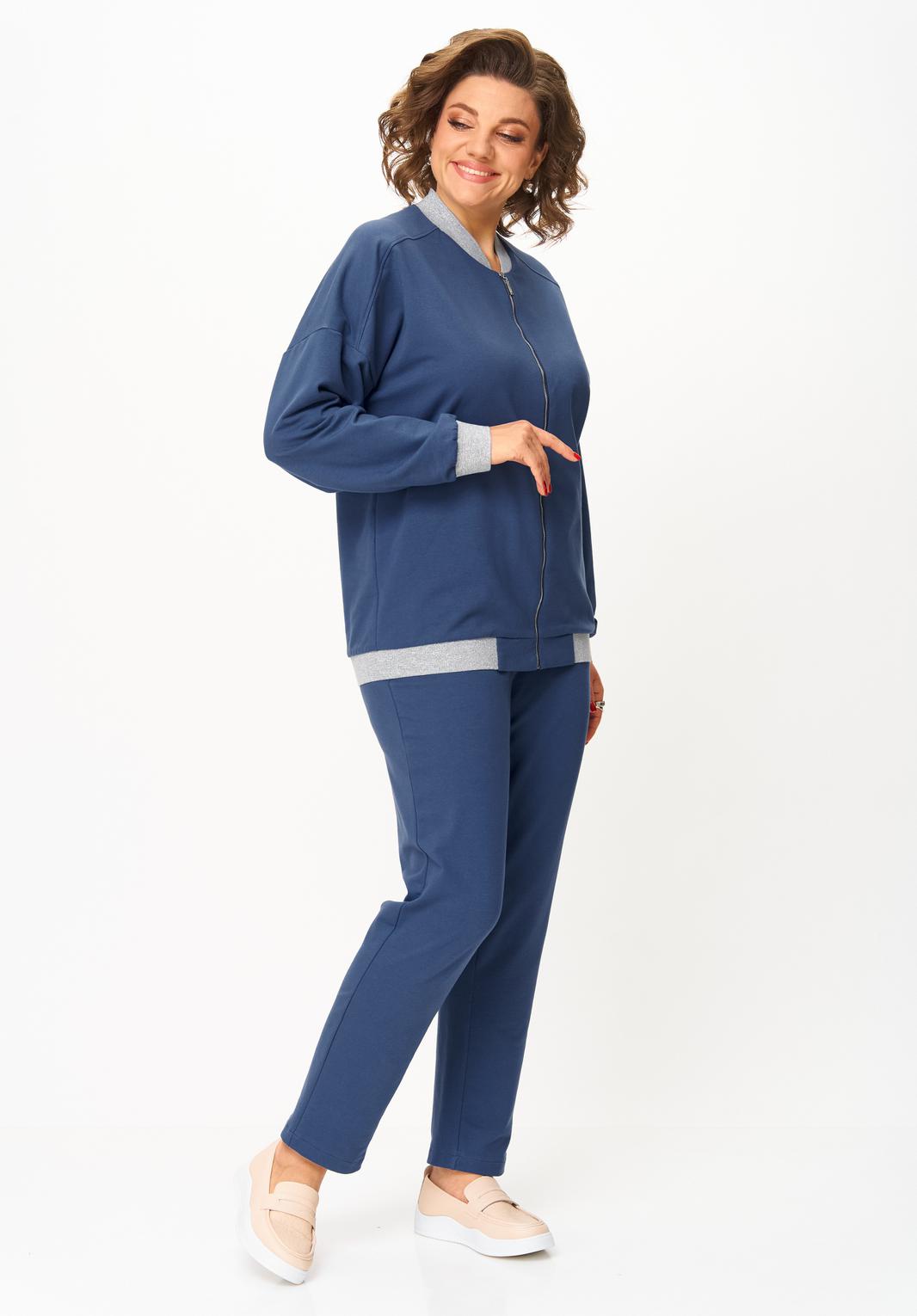 Комплект женский, двухпредметный, состоящий из свитшота и брюк. Свитшот со спущенным рукавом, с довязами-резинкой по горловине и по низу.
