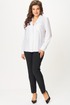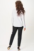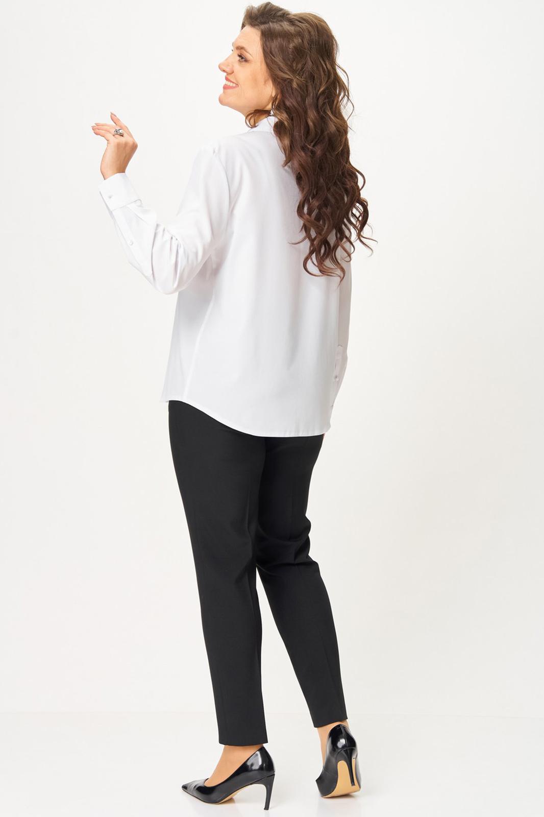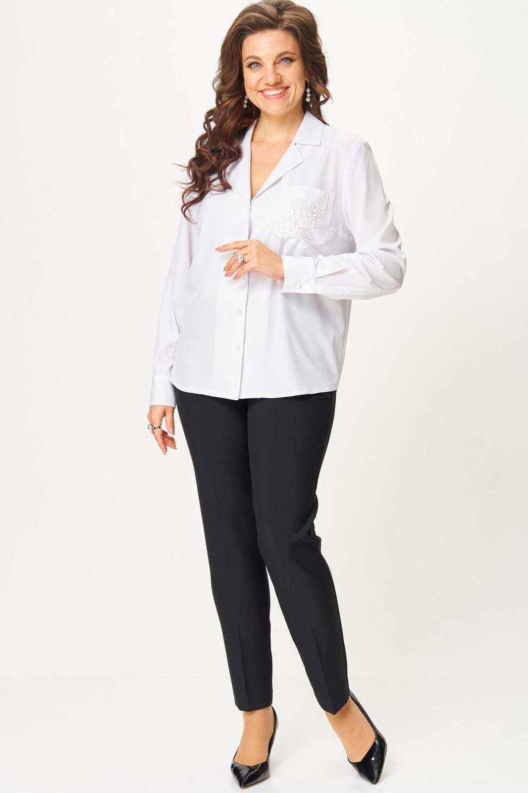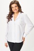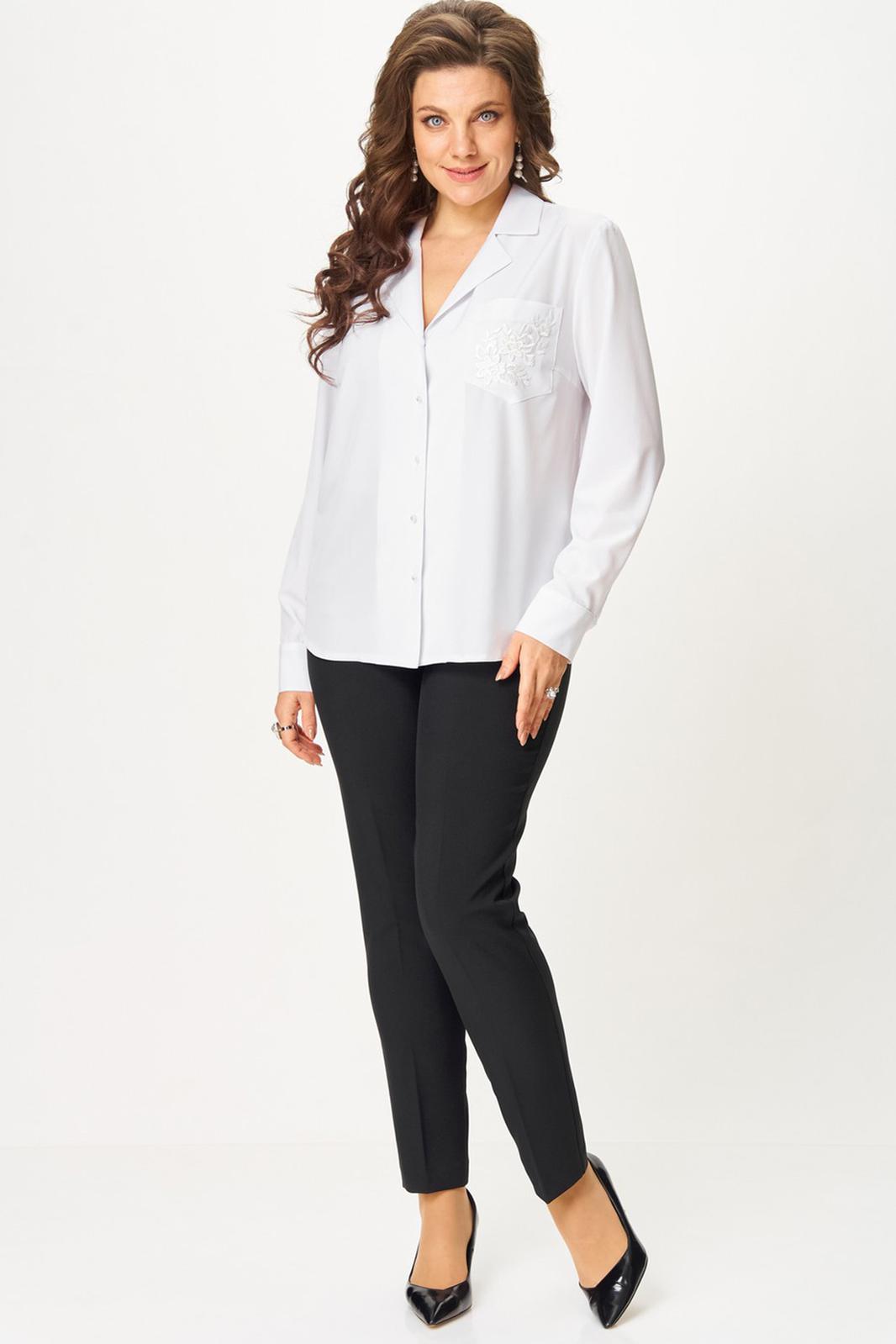 Блузка женская из хлопковой ткани, прямого силуэта с втачным рукавом. Линия плеча слегка спущена. Застежка центральная на петли и пуговицы. Воротник отложной с лацканами. Перед с вытачками по линии груди. По левой части переда накладной карман с отделкой. Рукав длинный рубашечный, по низу притачная манжета с застежкой петли и пуговицы. Линия низа фигурная.