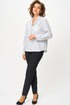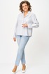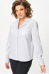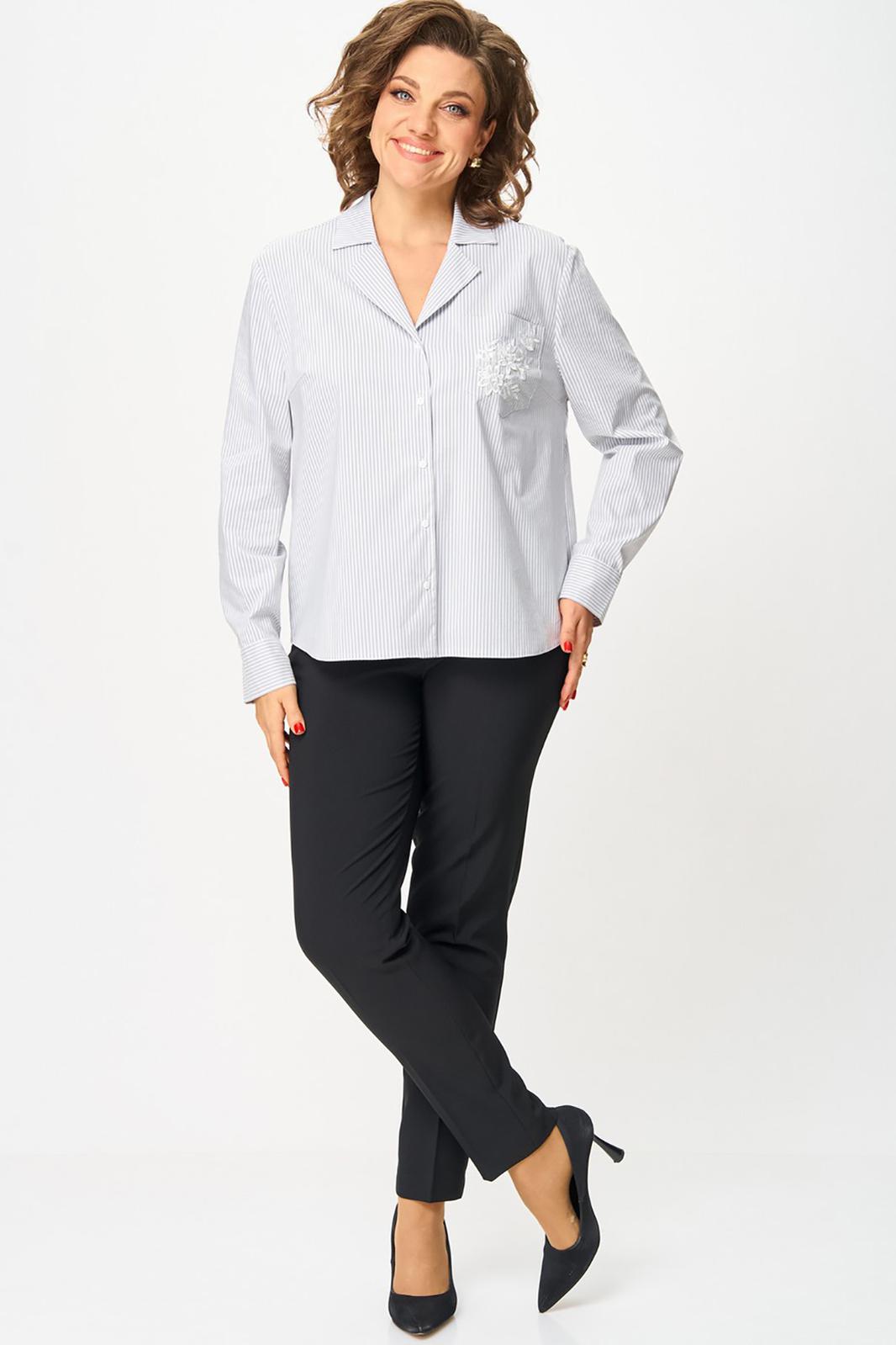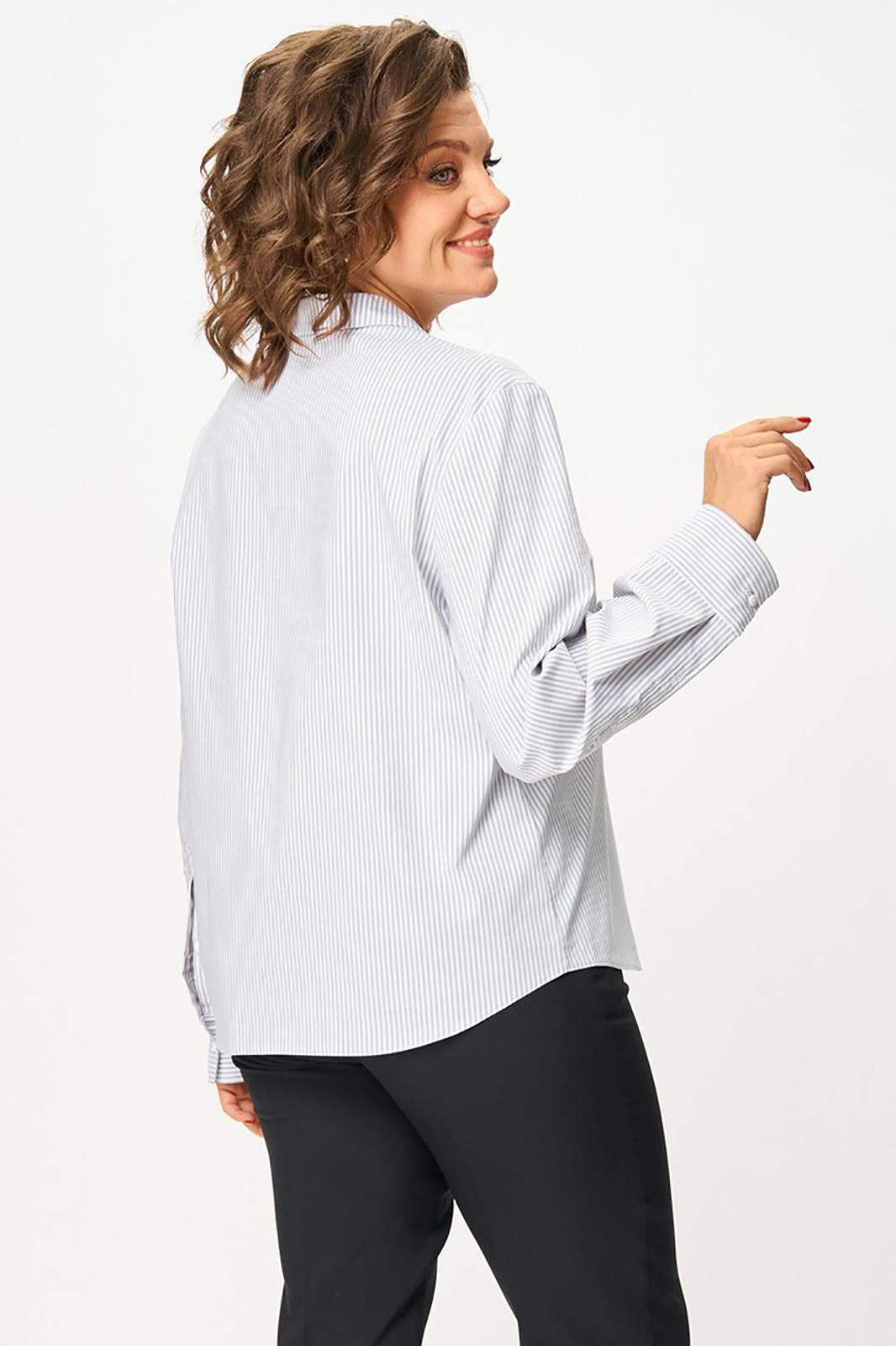 Блузка женская из хлопковой ткани, прямого силуэта с втачным рукавом. Линия плеча слегка спущена. Застежка центральная на петли и пуговицы. Воротник отложной с лацканами. Перед с вытачками по линии груди. По левой части переда накладной карман с отделкой. Рукав длинный рубашечный, по низу притачная манжета с застежкой петли и пуговицы. Линия низа фигурная.