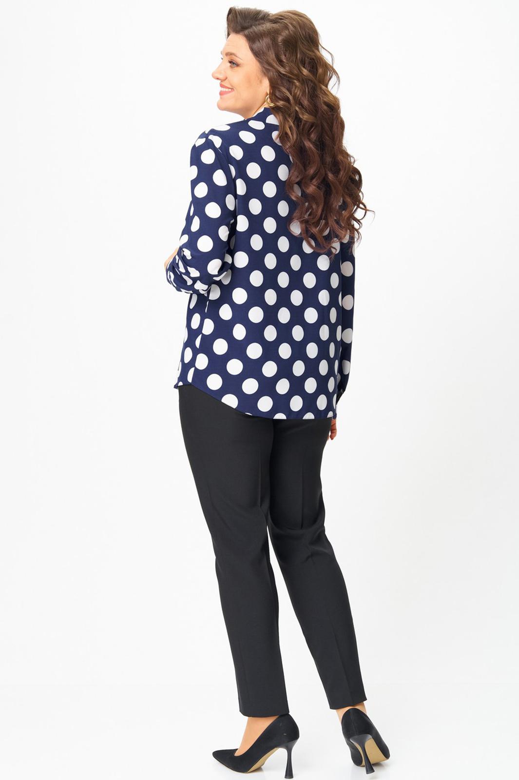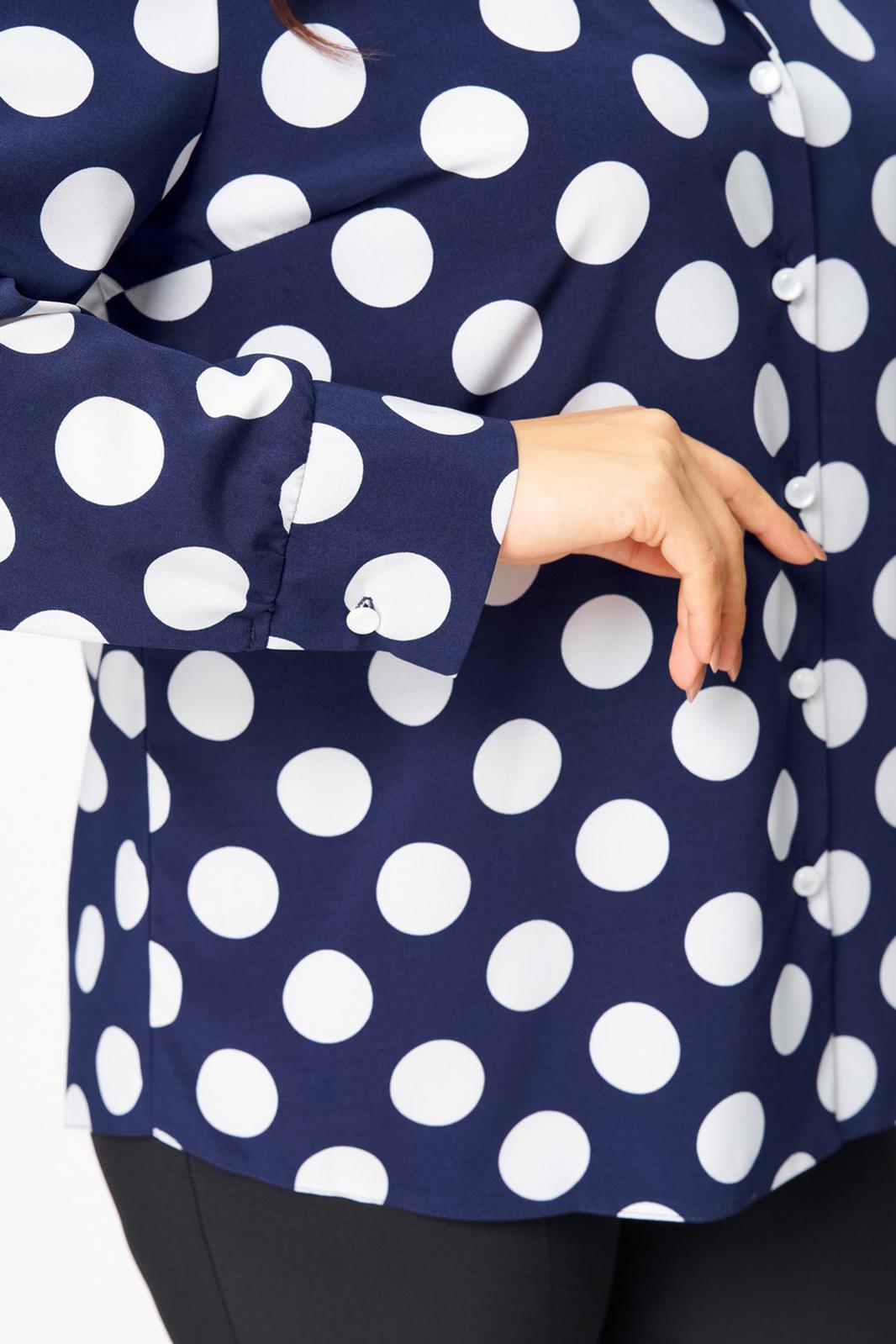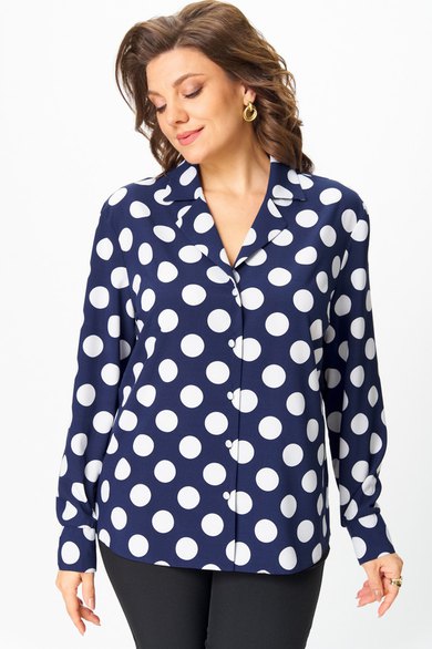 Блузка женская прямого силуэта с втачным рукавом. Линия плеча слегка спущена. Застежка центральная на петли и пуговицы. Воротник отложной с лацканами. По линии груди вытачки. Рукав длинный по низу со сборкой и притачной манжетой с застежкой петлю и пуговицу. Линия низа фигурная.