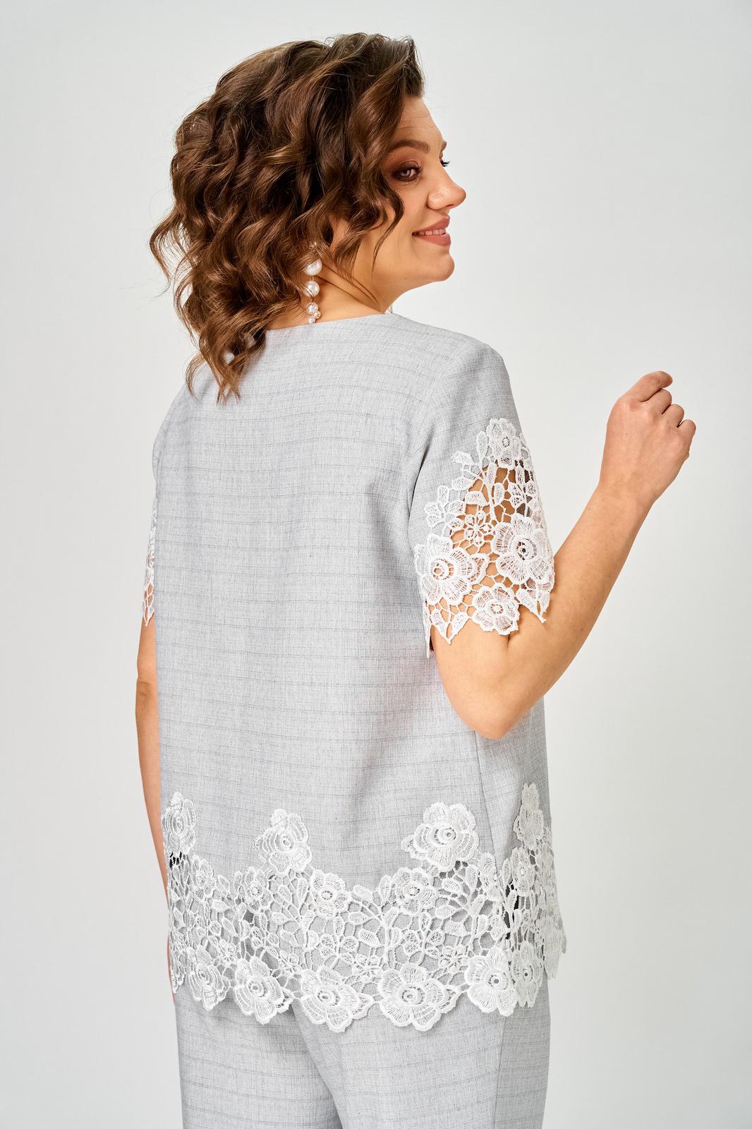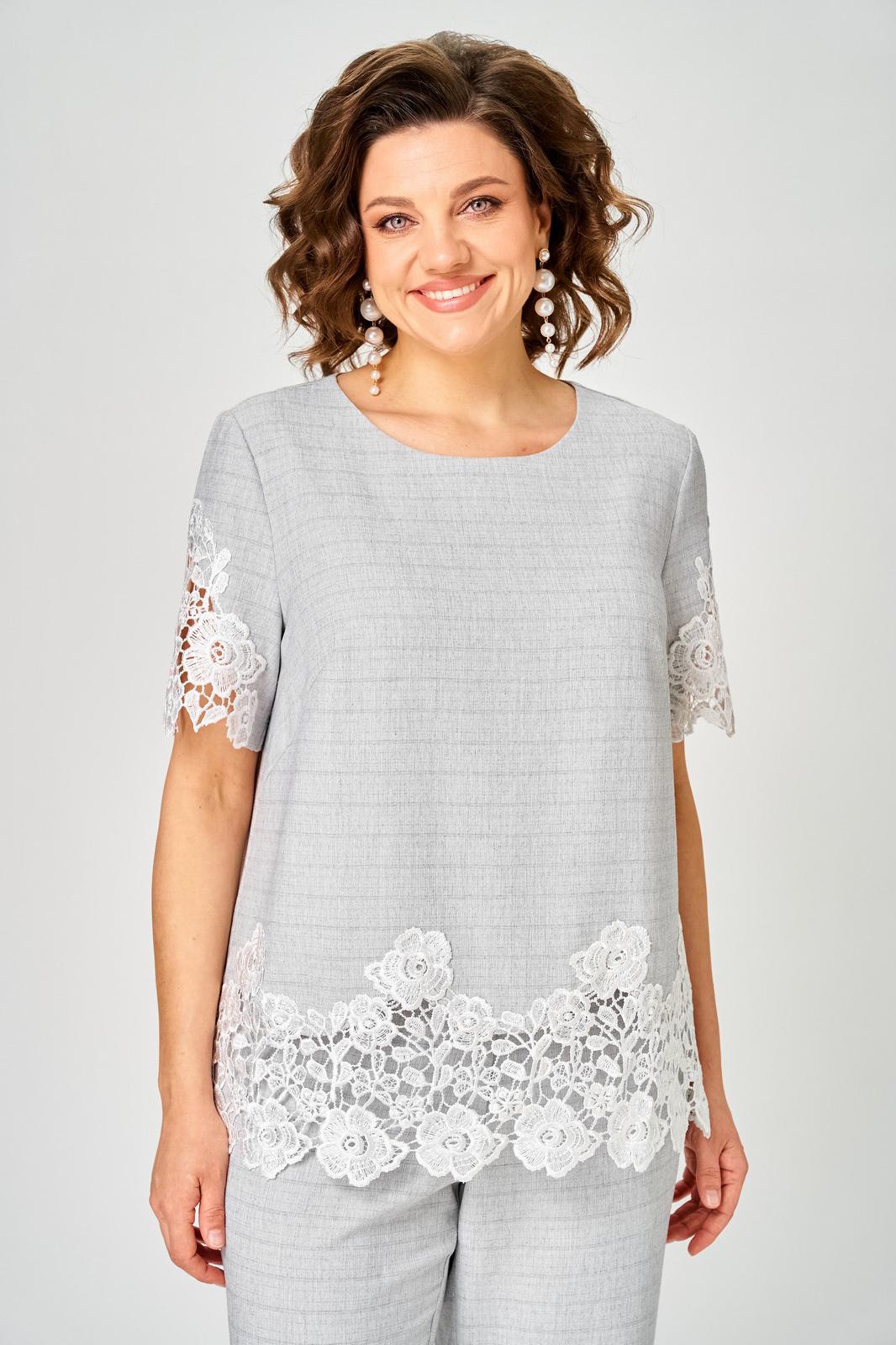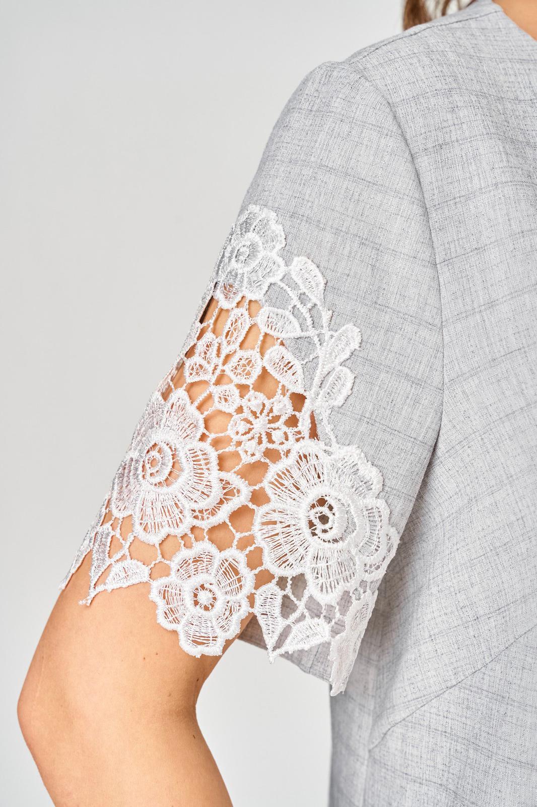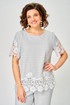 Блузка прямого кроя с декором из кружева с втачным рукавом. Горловина округлой формы. Нагрудная вытачка от бокового шва.