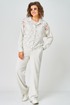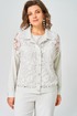 Жакет прямого силуэта выполнен из кружева. Линия плеча спущена. Застежка центральная с планкой на петли и пуговицы. По горловине отложной воротник. Перед и спинка с горизонтальными кокетками. Рукав длинный на притачной манжете с застежкой на петлю и пуговицу.