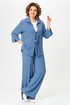 Жакет прямого кроя с втачным рукавом. Линия плеча слегка спущена. Застежка в виде завязок придает образу игривость и женственность. По горловине отложной воротник. Рукав длиной 3/4 заканчивающейся притачной манжетой с разрезом. В боковых швах разрезы.
