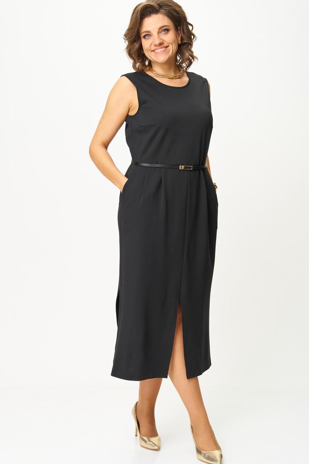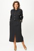 Платье полуприлегающего силуэта. Перед платья с горизонтальным эластичным швом по талии. Верхняя часть с вытачками по линии груди, нижняя часть со складками в области талии и карманами что обеспечивает прекрасную посадку и подчеркивает фигуру. Высокие разрезы по бокам и переду платья добавляют удобства. В комплекте съемный ремень.