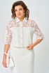 Жакет длиной до линии бедер прямого силуэта с втачным рукавом. Линия плеча спущена. Застежка центральная на петли и пуговицы, по горловине отложной воротник. По переду накладные карманы. Кокетка из кружева по переду и спинке добавляет романтичности и легкости.
