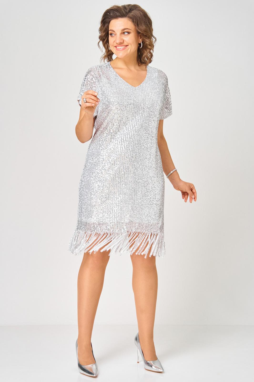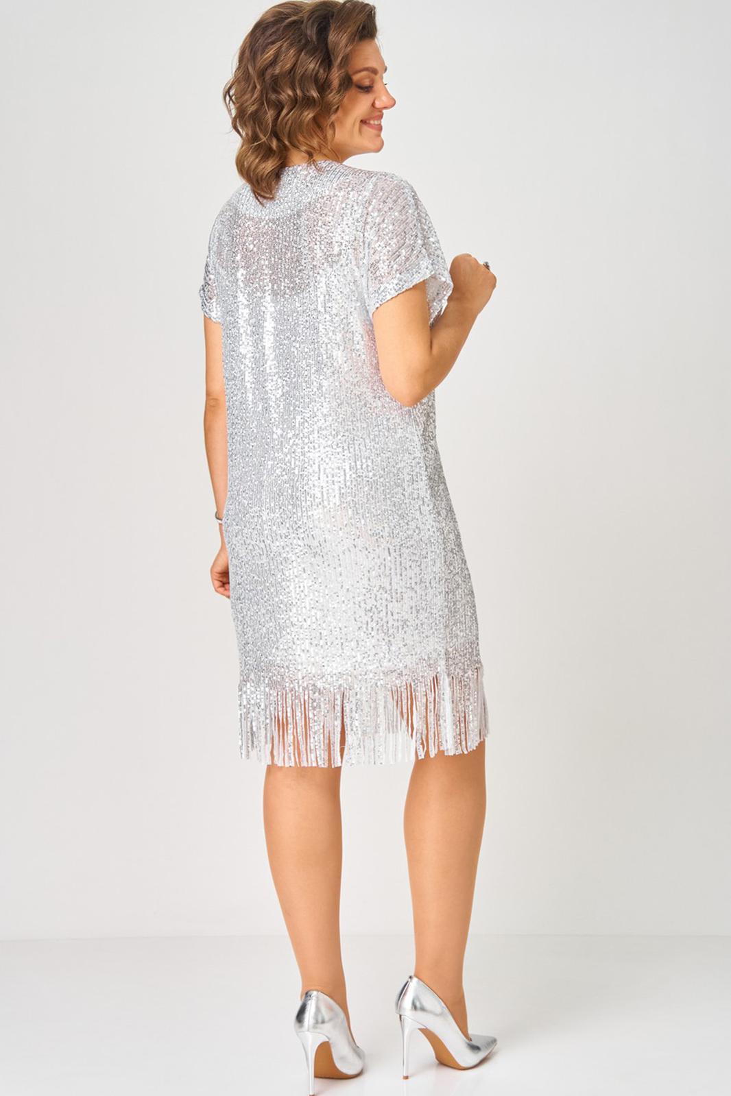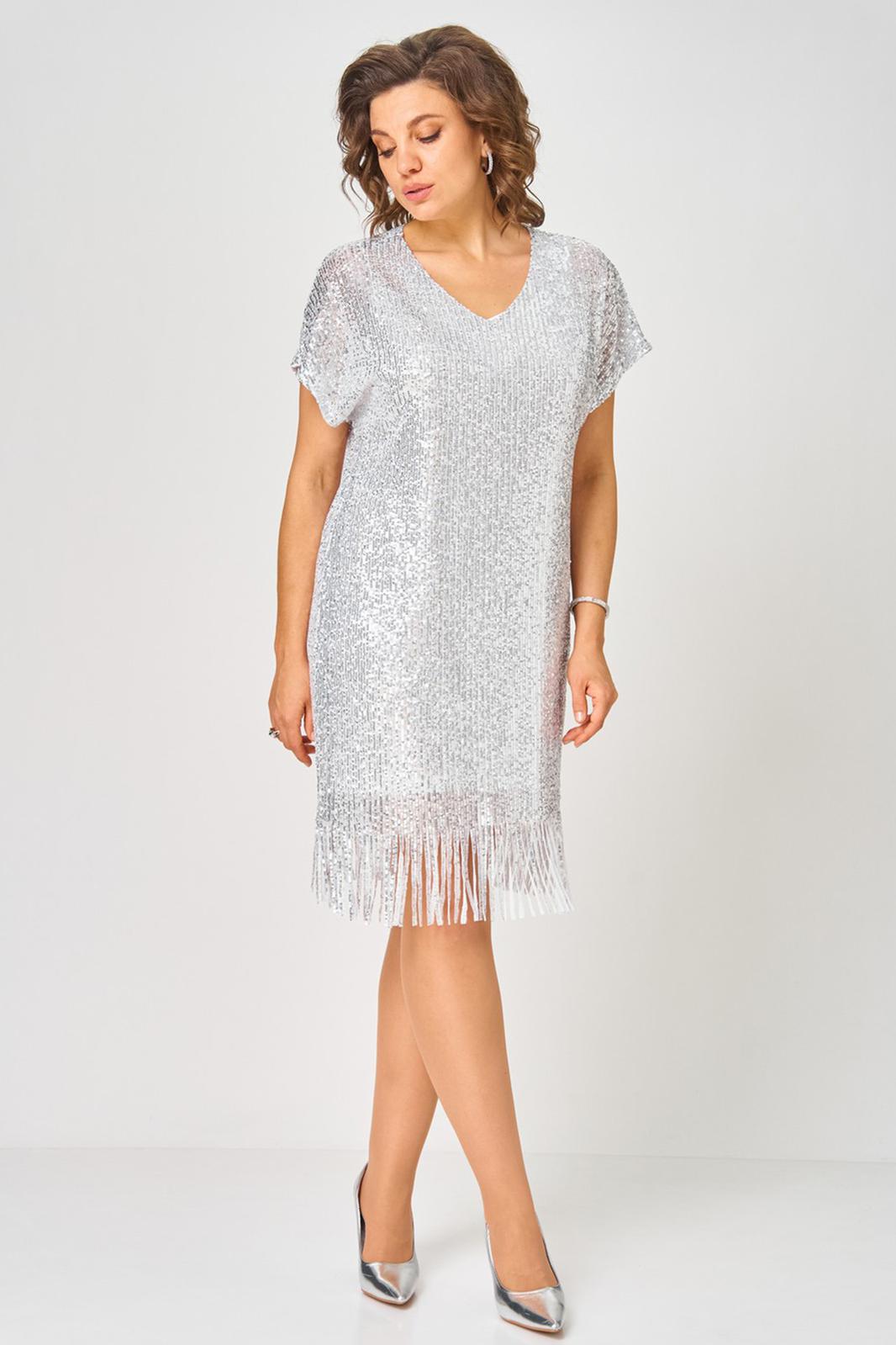 Платье нарядное с пайетками и бахромой прямого кроя, выполнено в комплектации из двух предметов. Линия плеча спущена. Вырез горловины v-образный. Нижнее платье полуприлегающего силуэта, на регулируемых бретелях. По линии груди вытачки.