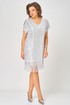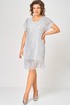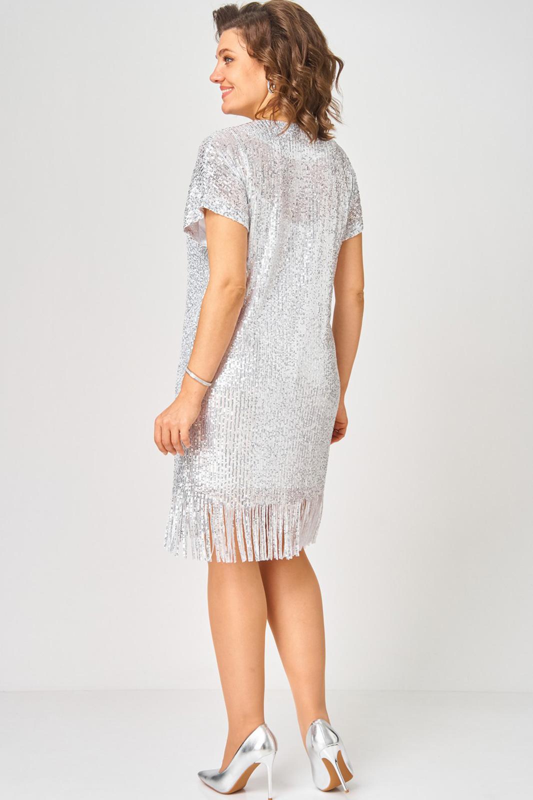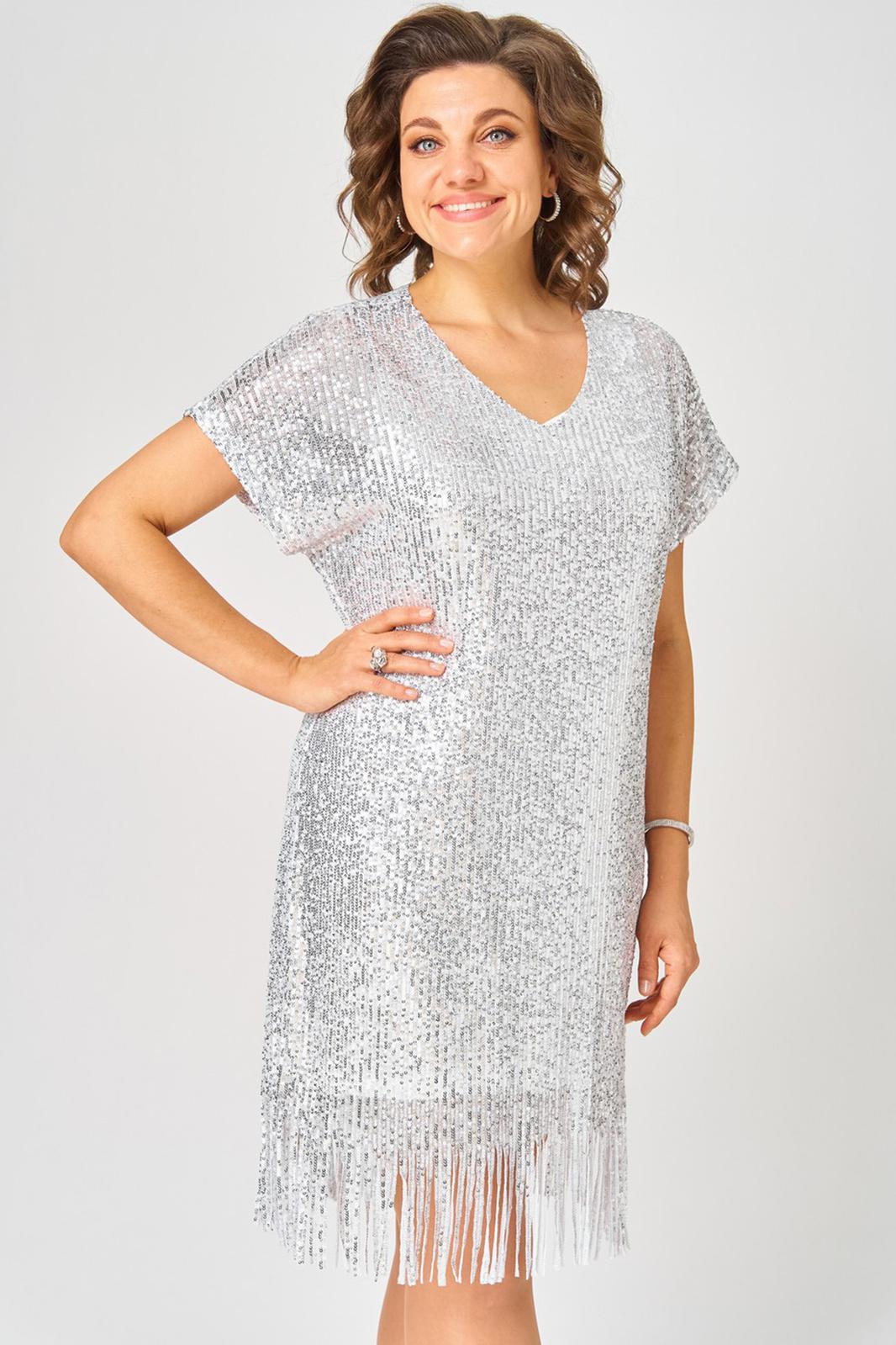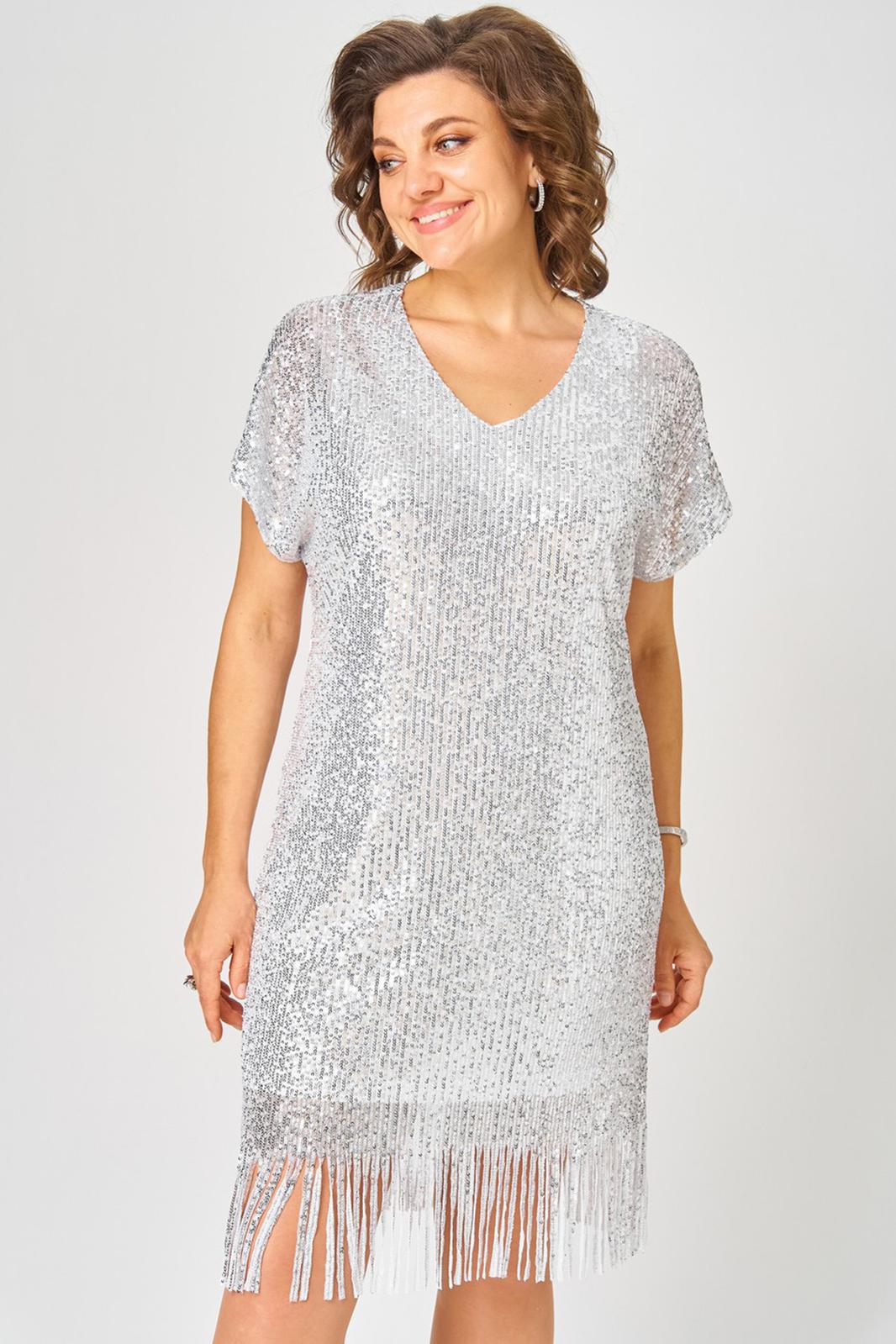 Платье нарядное с пайетками и бахромой прямого кроя, выполнено в комплектации из двух предметов. Линия плеча спущена. Вырез горловины v-образный. Нижнее платье полуприлегающего силуэта, на регулируемых бретелях. По линии груди вытачки.