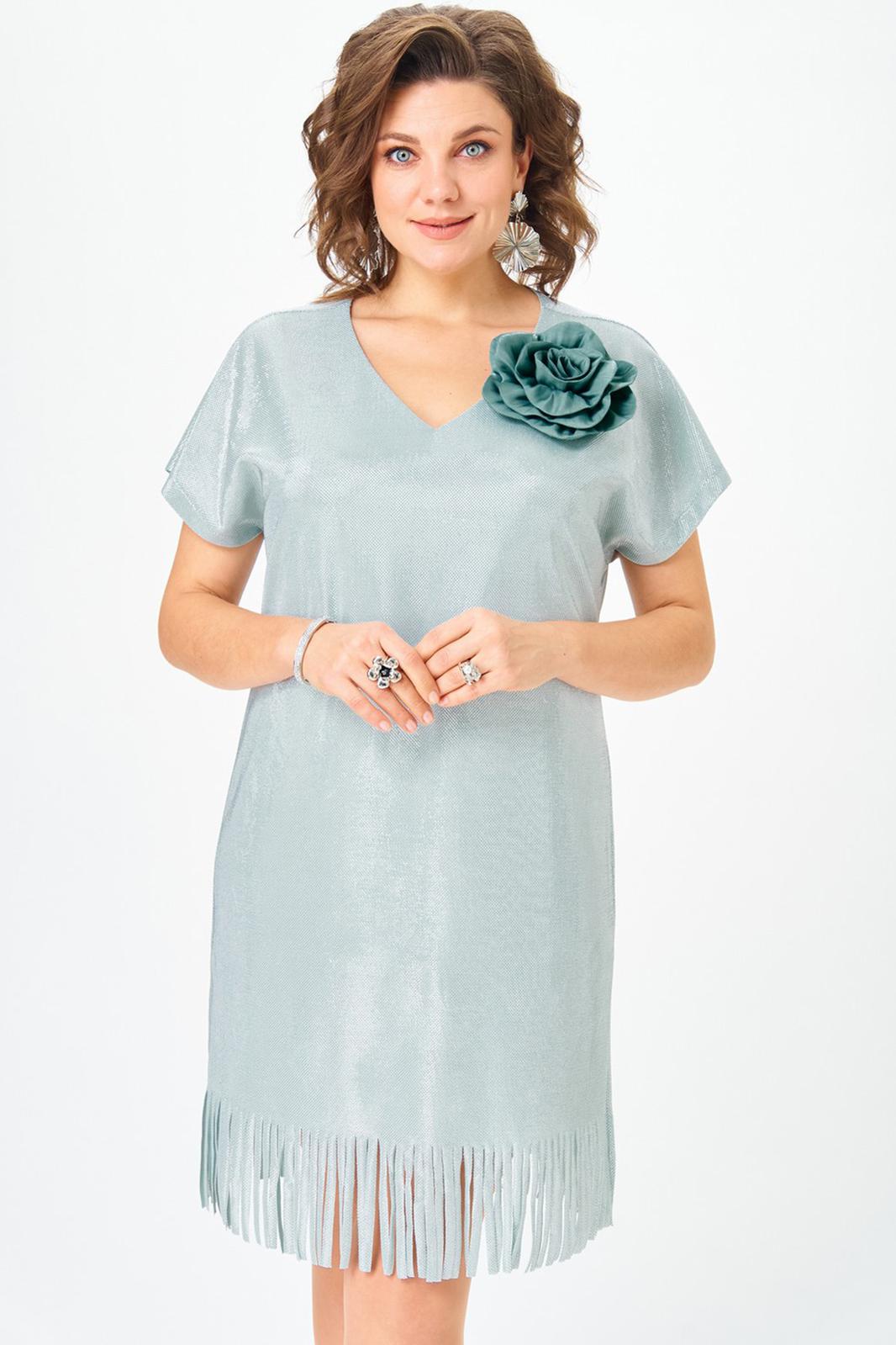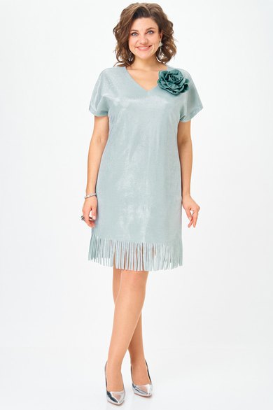 Платье нарядное с пайетками и бахромой прямого кроя, выполнено в комплектации из двух предметов. Линия плеча спущена. Вырез горловины v-образный. Нижнее платье полуприлегающего силуэта, на регулируемых бретелях. По линии груди вытачки.