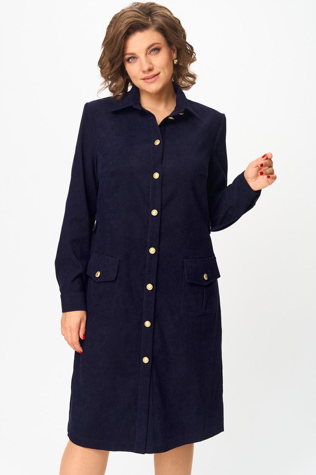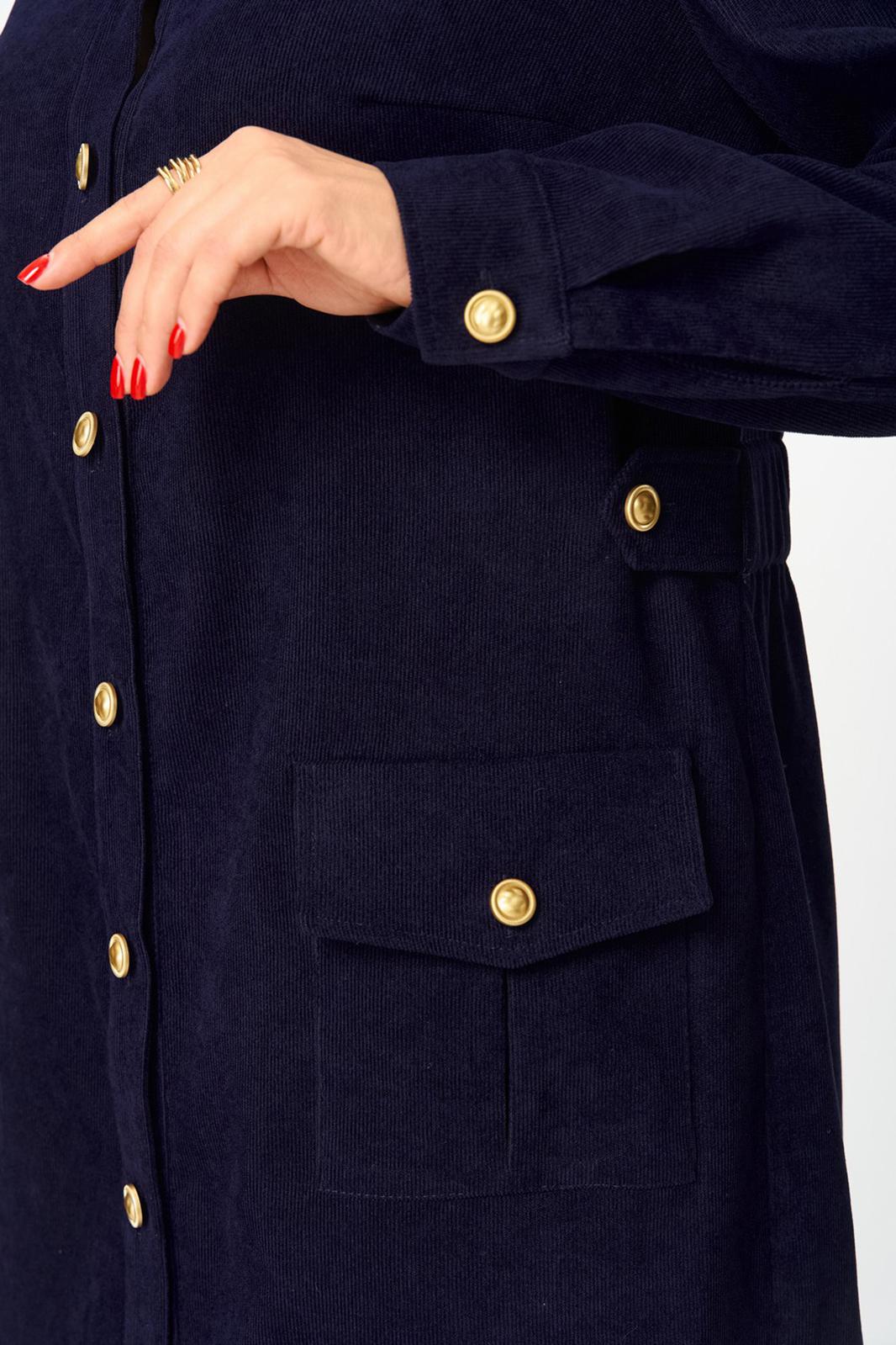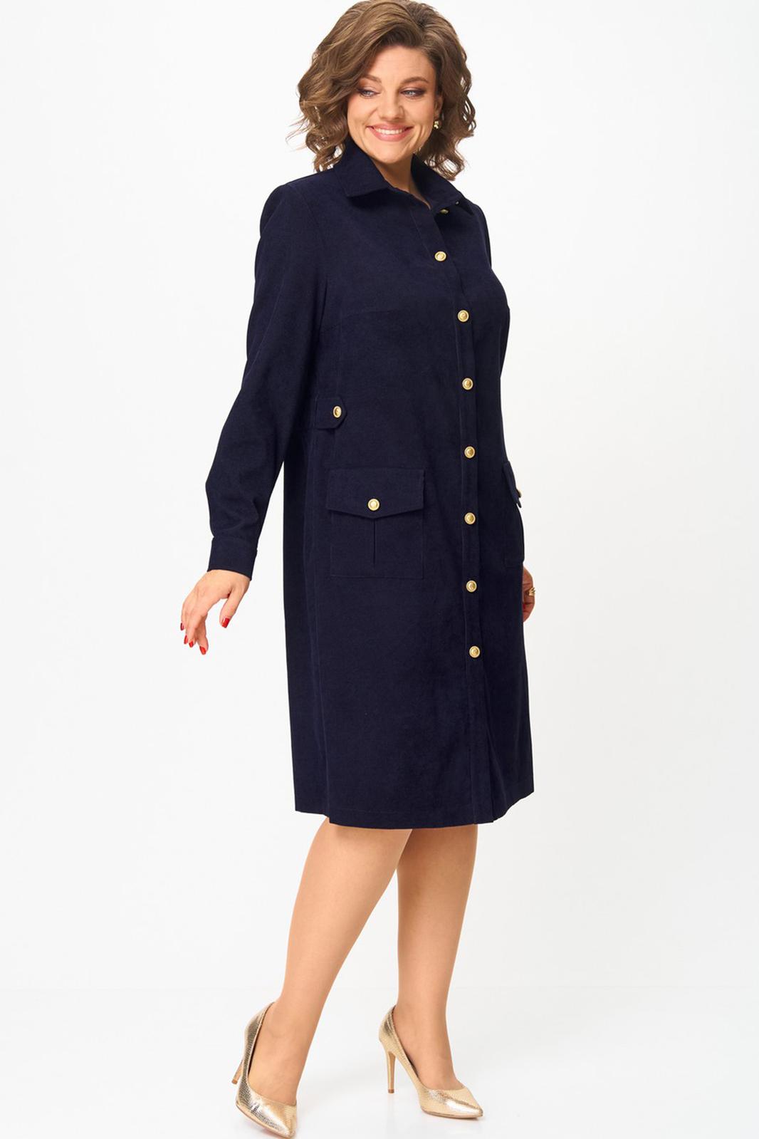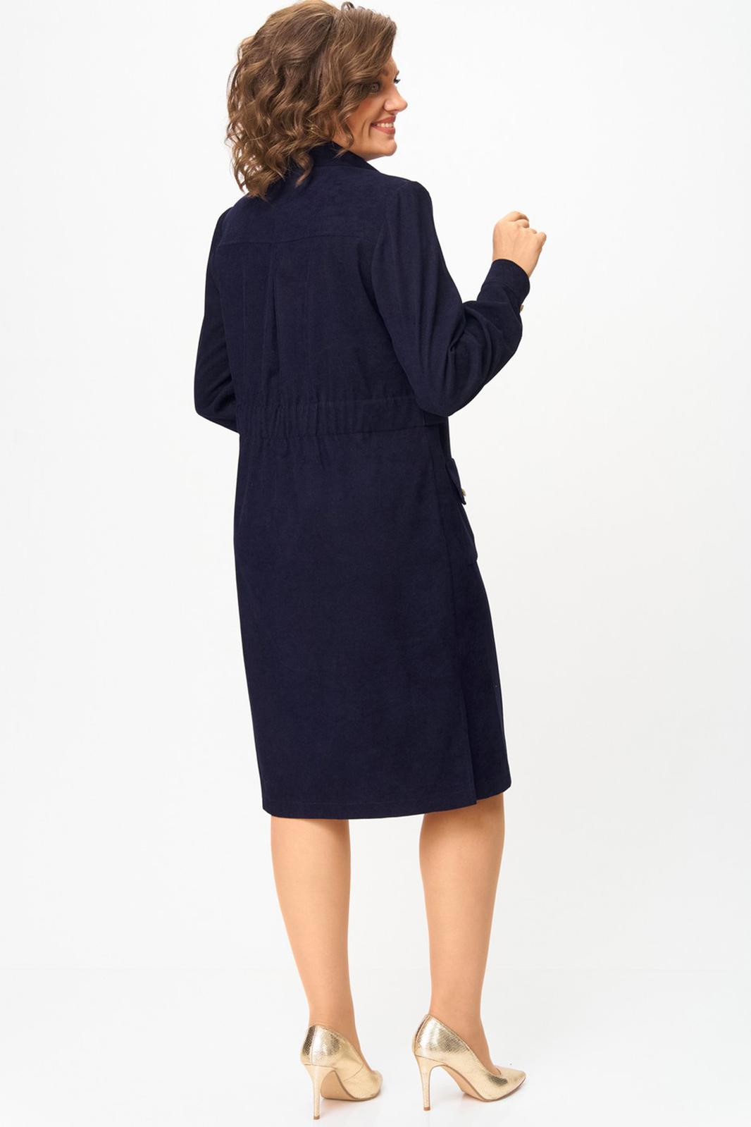 Платье женское полуприлегающего силуэта с втачным рукавом станет идеальным выбором для создания стильного и комфортного образа. Застежка центральная на петли и пуговицы. По горловине отложной воротник на стойке. По переду в нижней части накладные карманы с клапаном, по линии груди вытачки, по линии талии пата с застежкой на петлю и пуговицу. По спинке кокетка в верхней части, складка из-под кокетки, по линии талии широкая эластичная тесьма. В боковых швах обработаны разрезы.