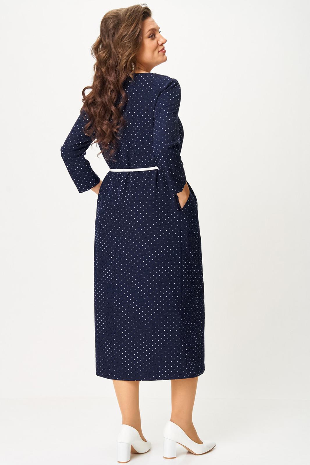 Платье женское полуприлегающего силуэта с втачным рукавом. Перед платья с горизонтальным швом по талии. Верхняя часть с вытачками по линии груди, нижняя часть со складками в области талии и карманами что обеспечивает прекрасную посадку и подчеркивает фигуру. Разрез по переду платья добавляет нотку игривости и удобства. В комплекте съемный ремень.