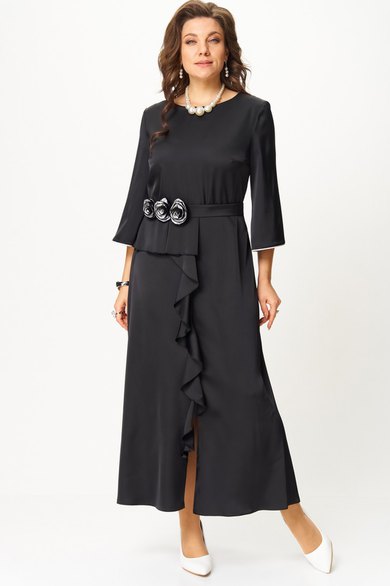 Рукав длиной 7/8 расширен к низу с отделкой кантом. По линии талии съемный пояс с украшением ручной работы в виде роз. Такое платье отлично подойдет как для вечернего выхода, так и для более формальных событий.