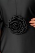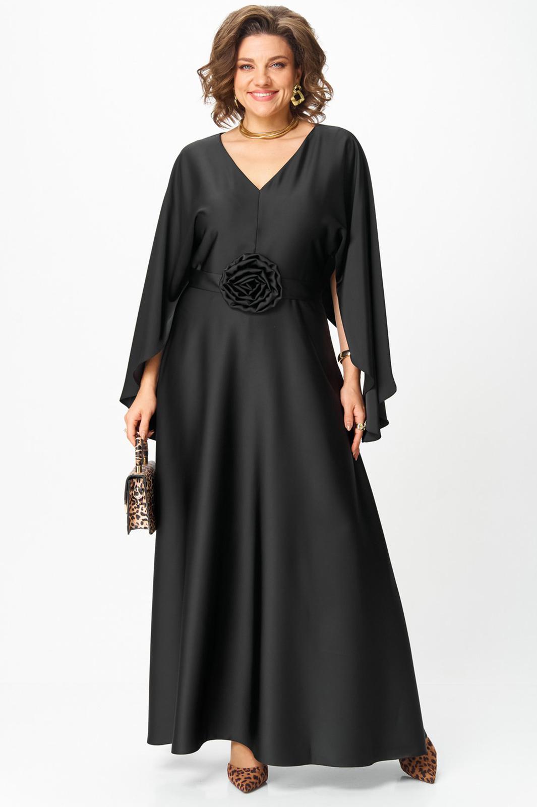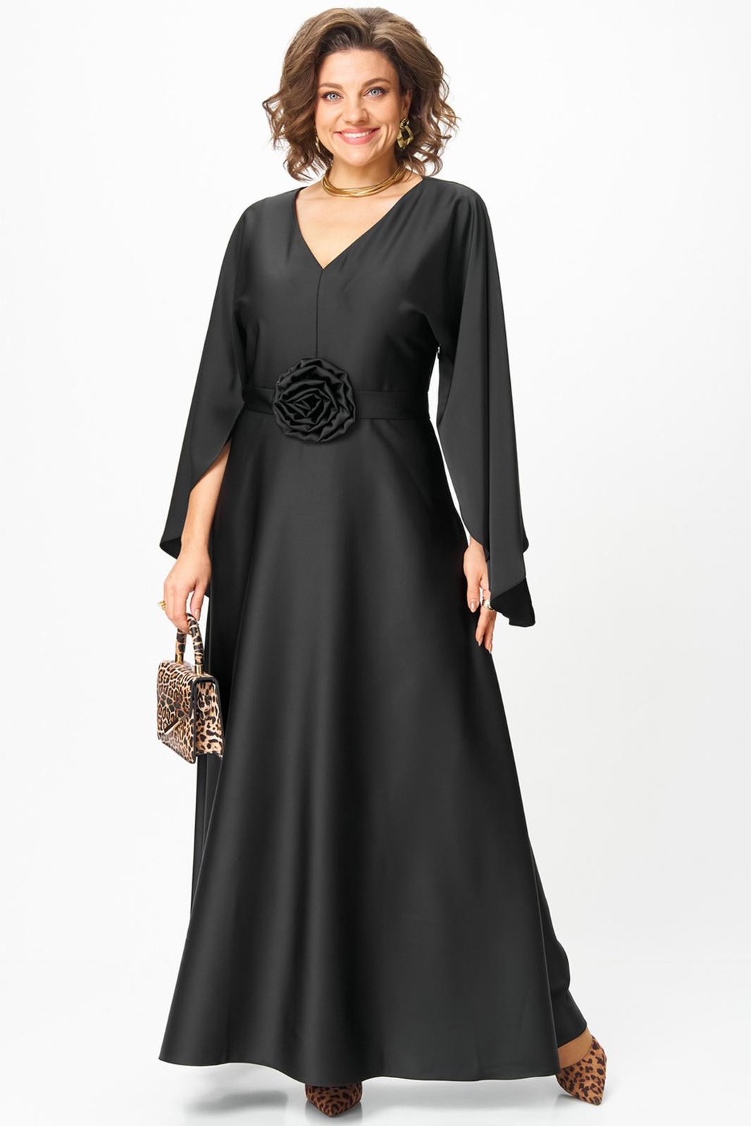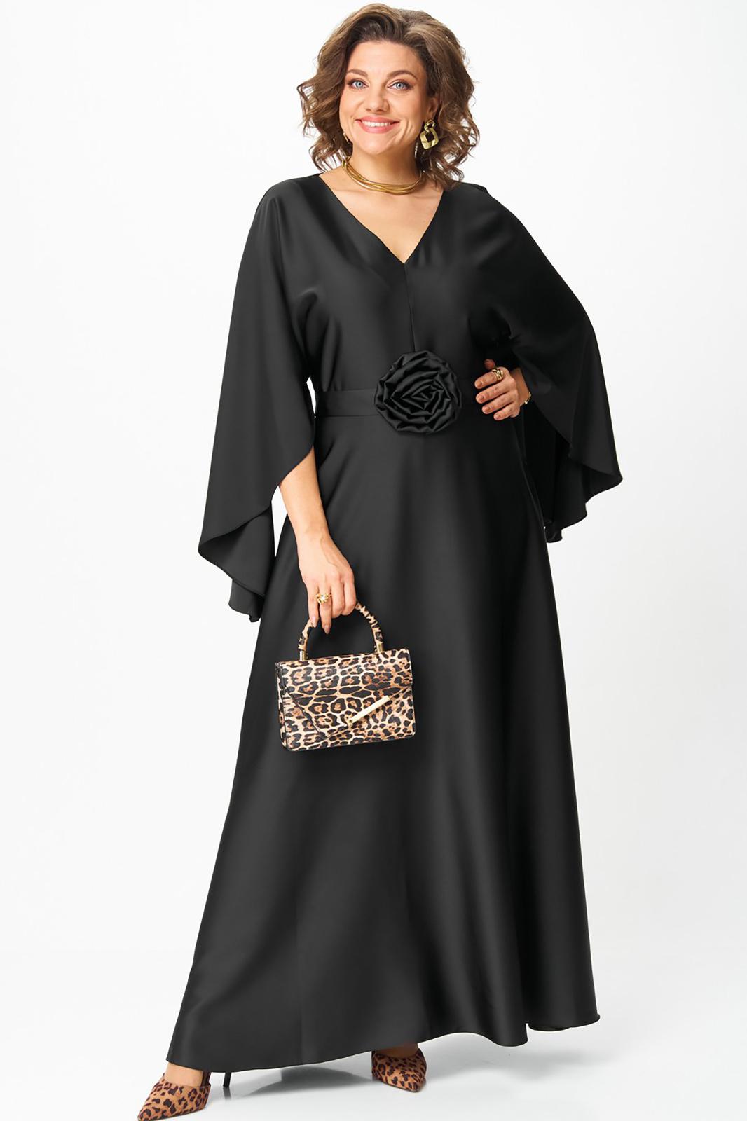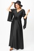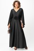 Платье женское вечернее полуприлегающего силуэта с расширением понизу. Вырез горловины v- образный. Застежка на потайную молнию в левом боковом шве. Платье отрезное по линии талии, нижняя часть переда и спинки расклешенная. Цельнокроеные рукава волнообразной формы добавляют романтичности и легкости. По линии талии съемный пояс с украшением ручной работы в виде цветка. Такое платье отлично подойдет как для вечернего выхода, так и для более формальных событий.