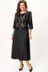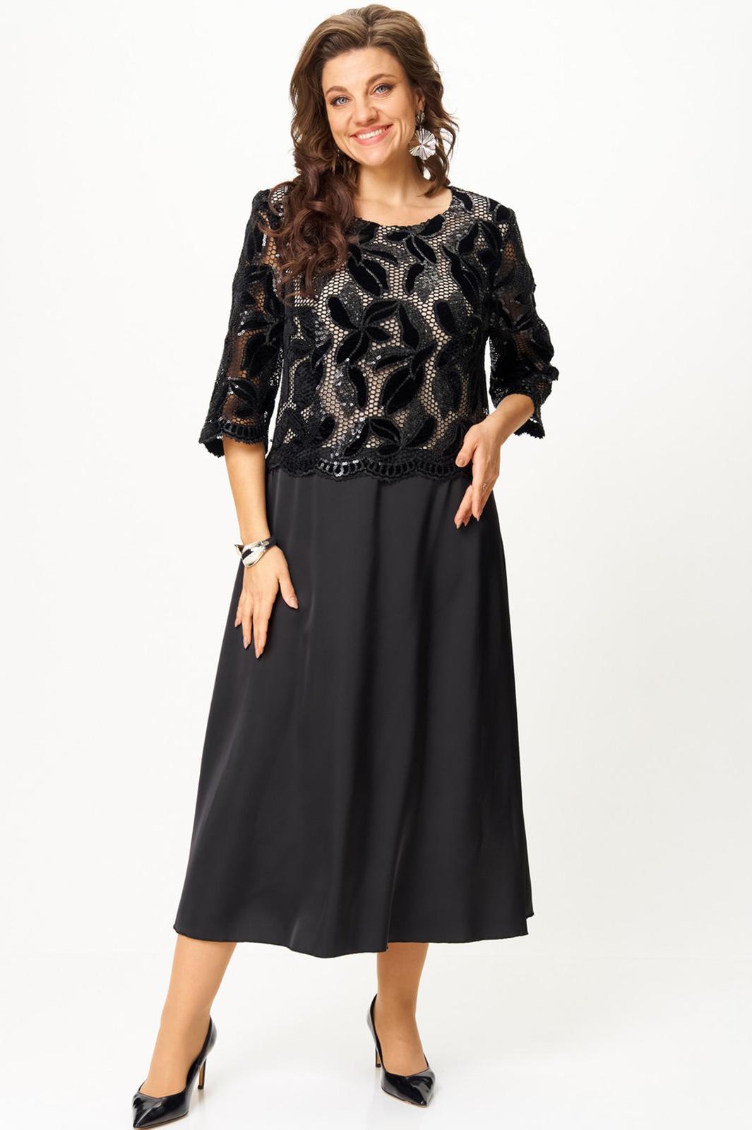 Платье женское полуприлегающего силуэта с расширением понизу. Платье выполнено как имитация комплекта. Верхняя часть платья из кружева на трикотажной подкладке, нижняя часть из атласа «Армани». По линии груди вытачки. Втачные рукава длиной ¾, добавляют романтичности и легкости. Такое платье отлично подойдет как для вечернего выхода, так и для более формальных событий.