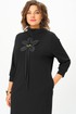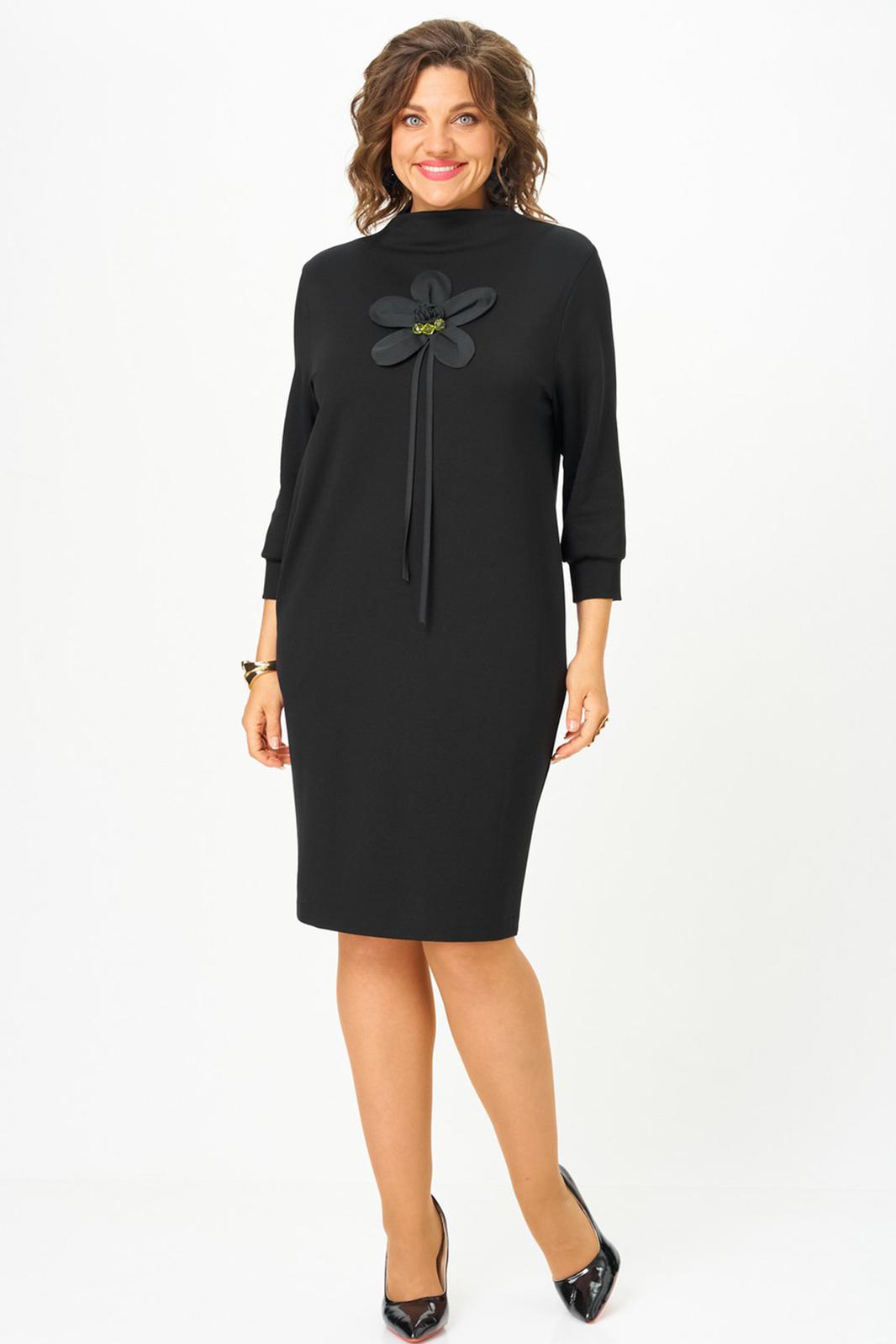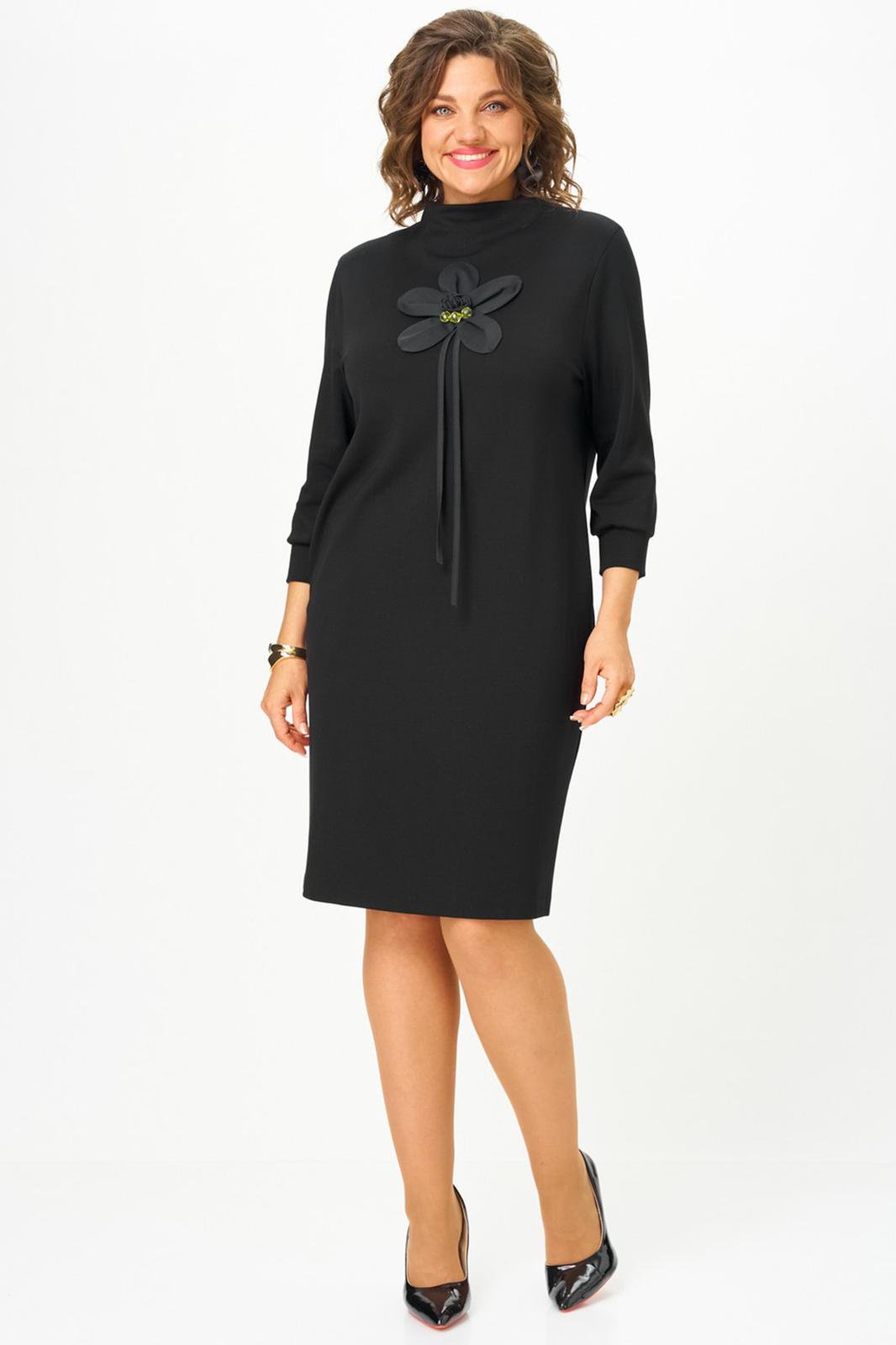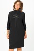 Платье женское полуприлегающего силуэта с втачным рукавом, станет идеальным выбором для создания стильного и комфортного образа. По горловине цельнокроеный воротник стойка. Спереди аппликация из отделочной ткани. В боковых швах обработаны карманы. Спинка со средним швом и разрезом по низу. Рукав длиной 7/8, объемный к низу с манжетой добавит романтичности и легкости.