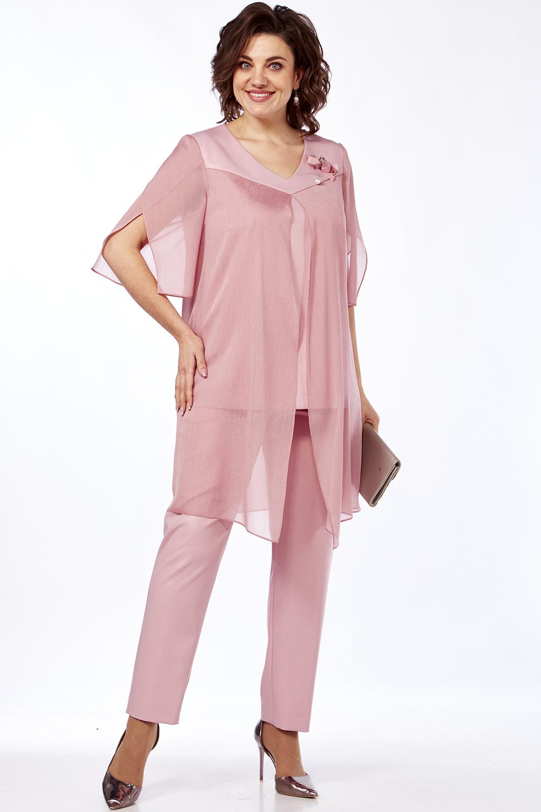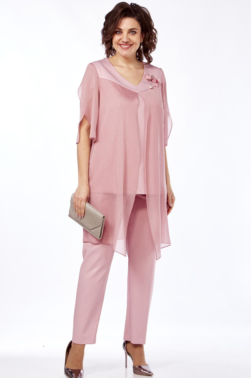 Нарядный костюм двойка, состоит из блузы и брюк. Блуза выполнена с отлетным шифоном по спинке, рукав также из шифона. Длина шифона 92 см. Длина рукава 39 см. Глубина выреза на груди 15 см.