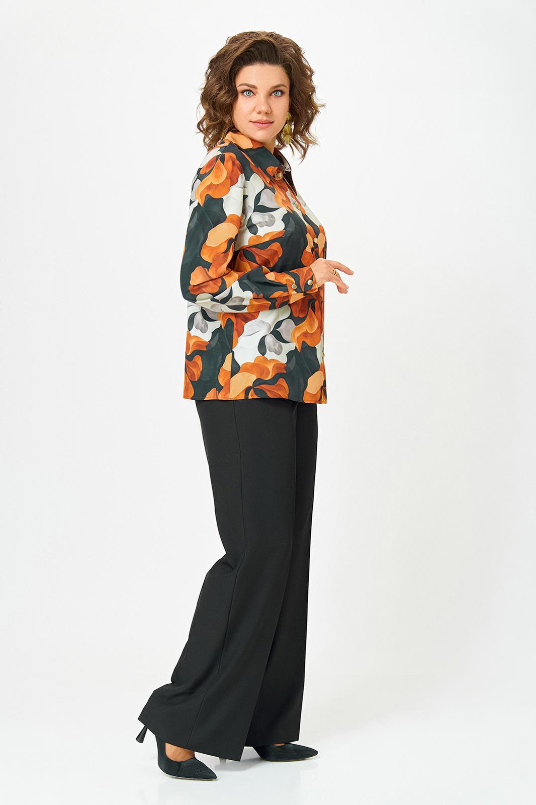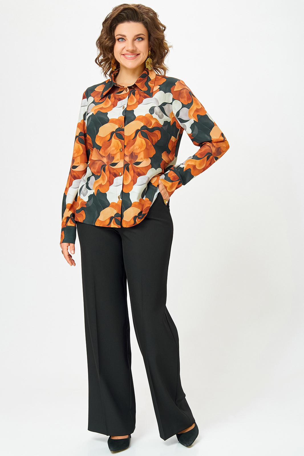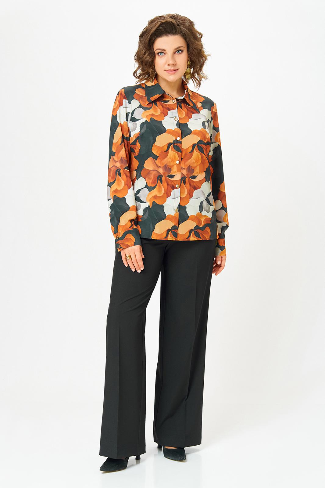 Блузка из нежной ткани «армани», имитирующей шёлк, прямого силуэта с центральной застёжкой на петли и декоративные пуговицы.